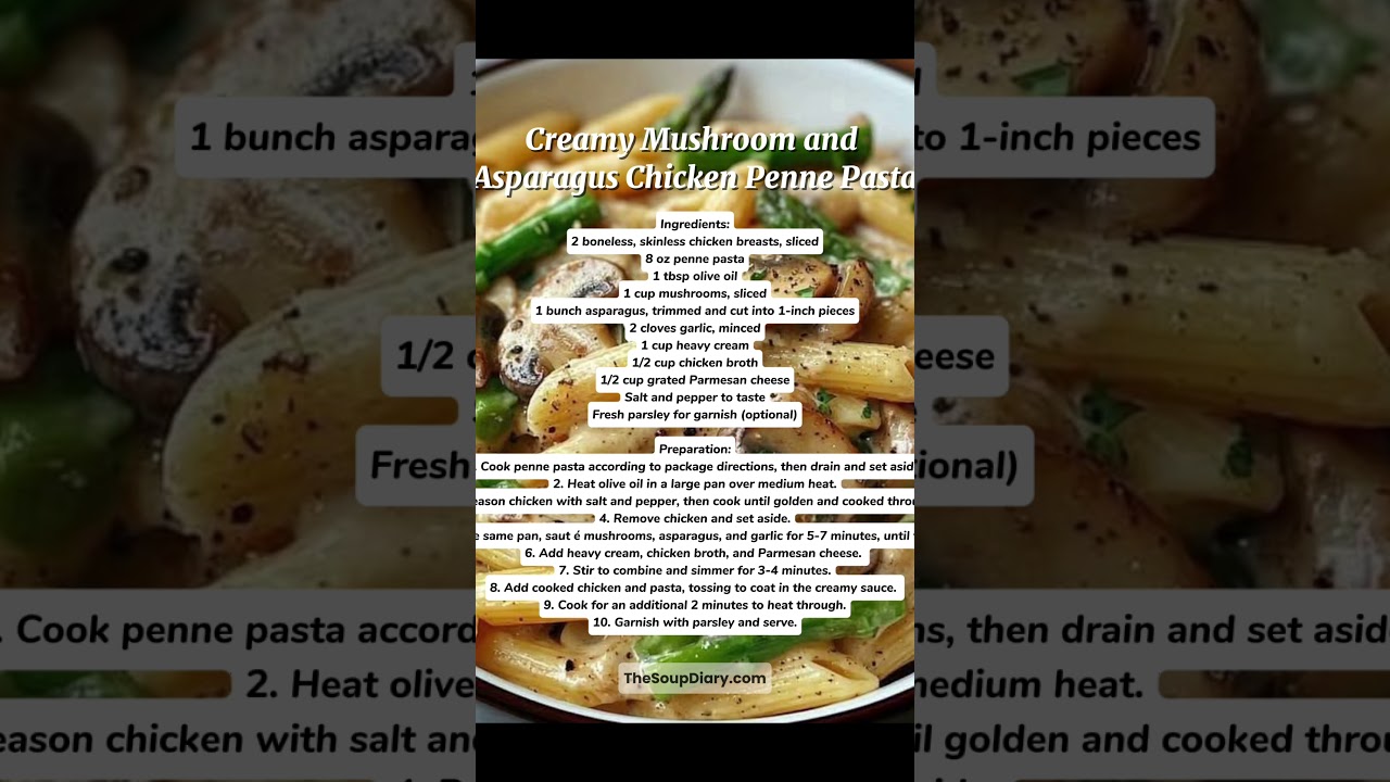 Creamy Mushroom & Asparagus Chicken Penne Pasta #recipe #food #healthy #health #life #cooking