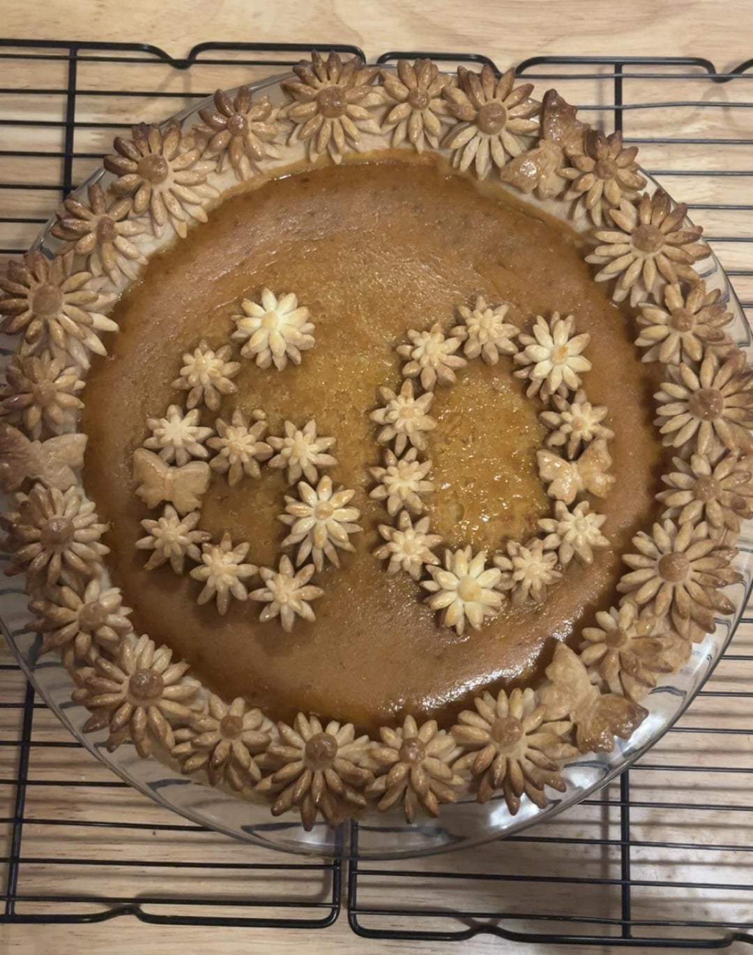 It’s not perfect and the edges got a little crisp but I’m not mad about it 😊a birthday pumpkin pie as requested by my mother , but I wanted to make it special for her 60th!by J-bone95 44 Comments basicbitch823 11 months ago gorgeous!! klutzycoffeefreak 11 months ago Beautiful! shelob_spider 11 months ago It still looks beautiful! BoredGamer64 11 months ago LGTM! Forward-Community708 11 months ago Phenomenal!! Soooo glad to see the update after baking 🙂 dandelion_jelly 11 months ago I kept your user page open for a bit to see this result — looks phenomenal!! SirRevan 11 months ago Should link to your other post before people bring out the pitchforks. plantlover97- 11 months ago Gorgeous. Looks yummy🥧 Party_Animal-987 11 months ago “It’s not perfect” dude that looks pretty damn near perfect to me! I bet the petals of those flowers were all crispy 🤤 Daysquiggly 11 months ago It’s gorgeous! Great work! Dany0 11 months ago thank you. just thank you. and congratulations AbjectAppointment 11 months ago Damn impressive. I’ve been waiting since the last post. AdDisastrous6738 11 months ago So awesome! I can’t even get a regular crust right. BloopityBlue 11 months ago I love this!!!! So pretty, great job! theweirdmobile23 11 months ago This is tickling my brain in a way I cannot articulate; WELL DONE LaughOrGoCrazy 11 months ago Gorgeous !! beetnemesis 11 months ago Beautiful! Juliennix 11 months ago *HEAVIER BREATHING* inorbit007 11 months ago It turned out beautiful! kelrdh 11 months ago The talent. This is lovely! katie-lynnn 11 months ago WOWOWOWOWO JesusIsKewl 11 months ago that is adorable!! great work! unaburke 11 months ago [https://www.reddit.com/r/Baking/comments/1j22yxv/comment/mfozsfs/](https://www.reddit.com/r/Baking/comments/1j22yxv/comment/mfozsfs/)Link to before photos, as I cant see them linked here. This pie looks amazing OP!! razzmasass 11 months ago STUNNING 🤩 AMAZING JOB, THIS MADE MY DAY Paivcarol 11 months ago Well done! Due_Caramel_292 11 months ago Amazing!!! BabyNOwhatIsYouDoin 11 months ago I would be over the moon if someone put so much thought, time, and effort into something like this for me ❤️ Chemical-Depth7941 11 months ago Lovely 😍 nice job Hair_I_Go 11 months ago Thanks for the update:) I was wondering. Looks beautiful ✨ effreeti 11 months ago I can’t believe none of those broke off! wildman9160 11 months ago Wow Spinachbear 11 months ago This is art, I wouldn’t eat it because it’s so pretty! 😅 Godmother_Death 11 months ago I knew it was worth setting up a reminder, it looks amazing OP, well done! I’m just so sad I cannot try it, it really does seem delicious 🤤 AppropriateWeight630 11 months ago Would a bit of foil around the edges keep it from burning next time? It’s very cute! SteakJesus 11 months ago Oh fuck yeah this makes me crumb. ssdsssssss4dr 11 months ago Omg, I’m crying. You’re such a sweet and thoughtful child. May you both have many, many more happy and healthy birthdays to celebrate together. weareallmadherealice 11 months ago In crust we prayed for you. The fires of the oven were gentle and kind. mamaguebo69 11 months ago Crispy pie crust is good pie crust. This looks to die for. KneeDeepInBrown 11 months ago Holy shit dude, that is one beautiful pie. I’m sure it tastes as incredible as it looks Marta996633 11 months ago Martha Stewart would be proud Biggy_DX 11 months ago Yeah, so we’re doing our July 4th inside, so don’t worry about the bugs. Bring all the pies you want, and we’ll pay for forks. curiousdryad 11 months ago Holy crap. Beautiful! Gofastnut 11 months ago It’s beautiful enough to almost not eat. Almost. It’s under the title of “baking” but could also be in “art”. nicolenotnikki 11 months ago Did you use a specific cutter for the flowers? I need one for Thanksgiving this year! It’s gorgeous.Write A CommentYou must be logged in to post a comment.