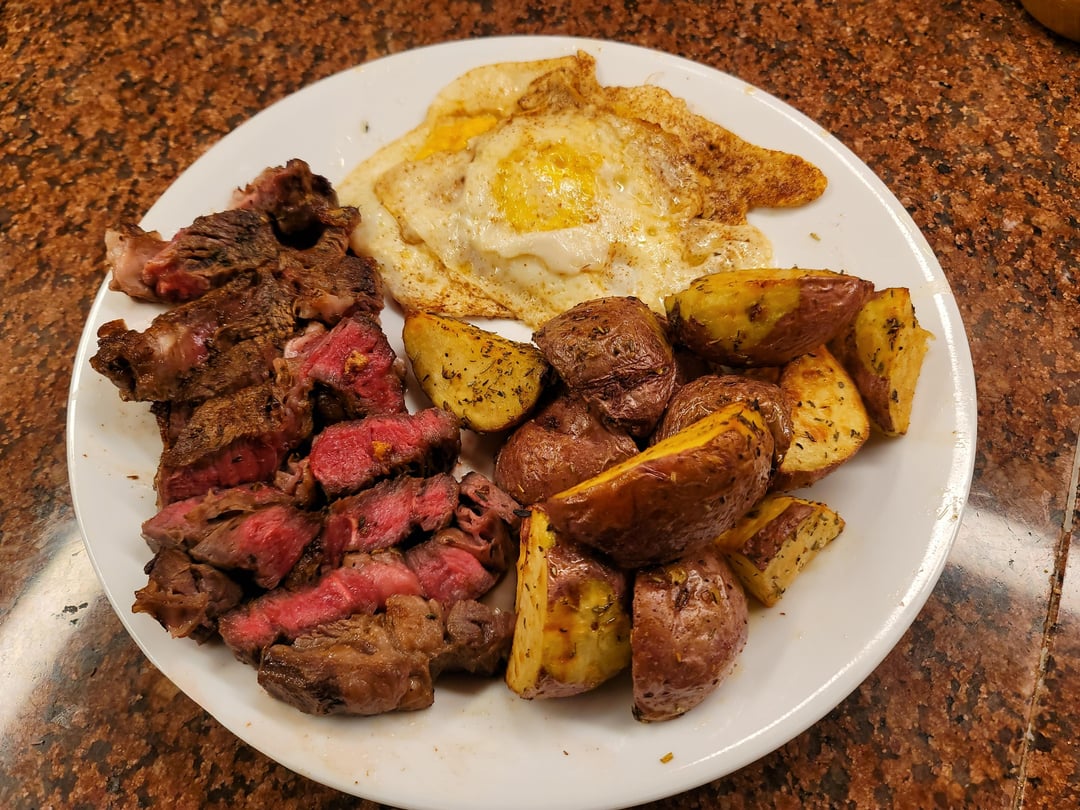Ok-Selection4206 11 months ago Steak looks really dry and tough. What happened to the eggs? They look burnt rubber.