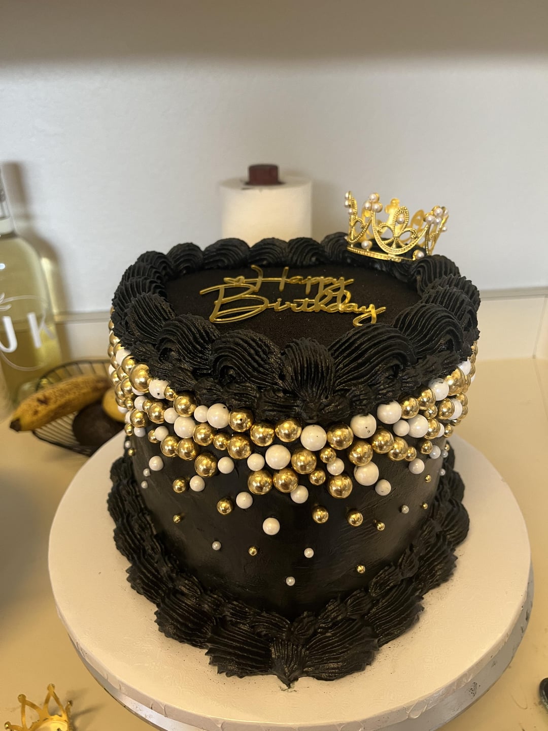 – Carrot cake with cream cheese frosting, everything from scratch but the edible pearls (and crown ofc)