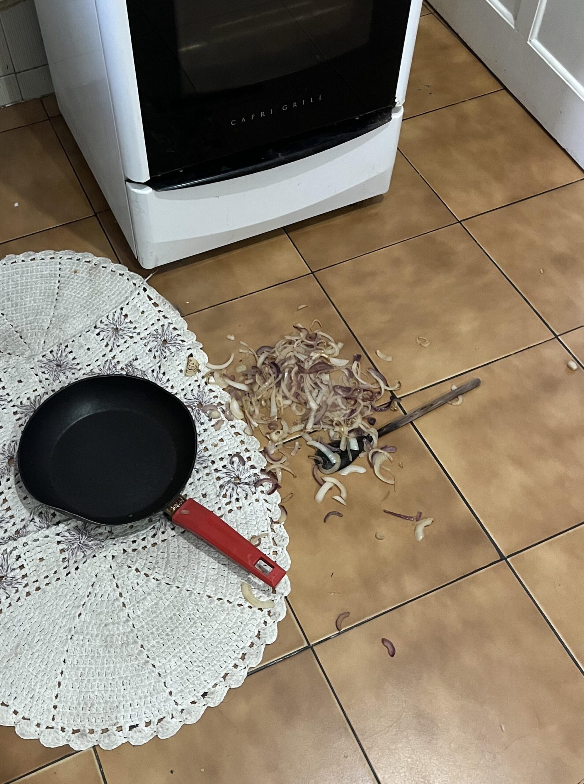 Was that dent from smashing the pan on the ground in anger after you spilled the precious onions?