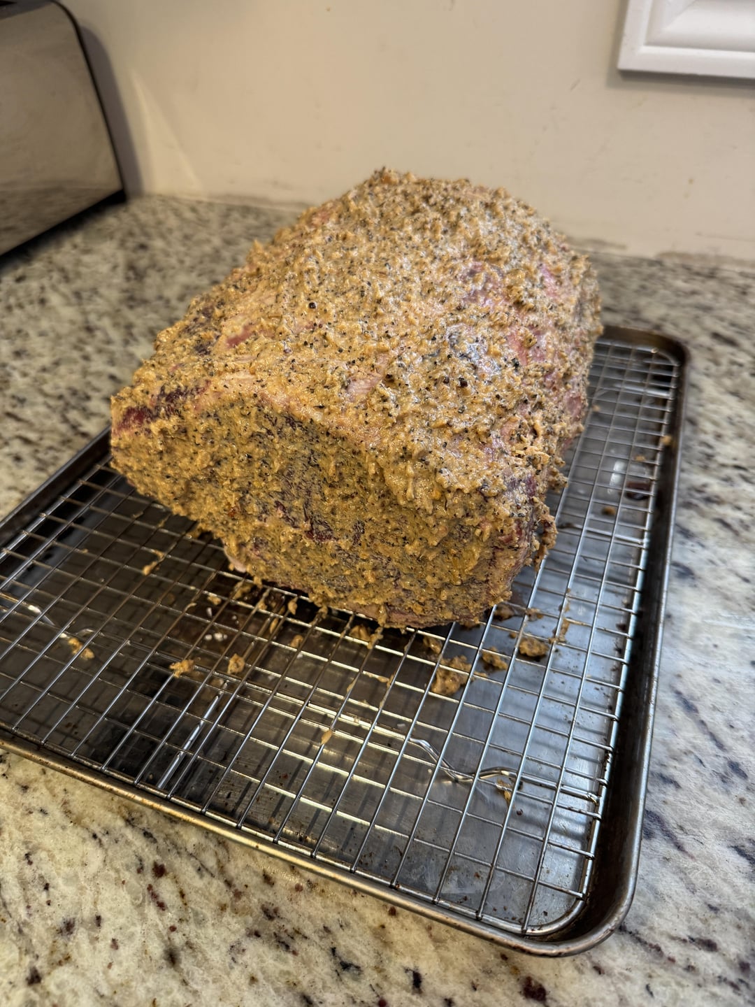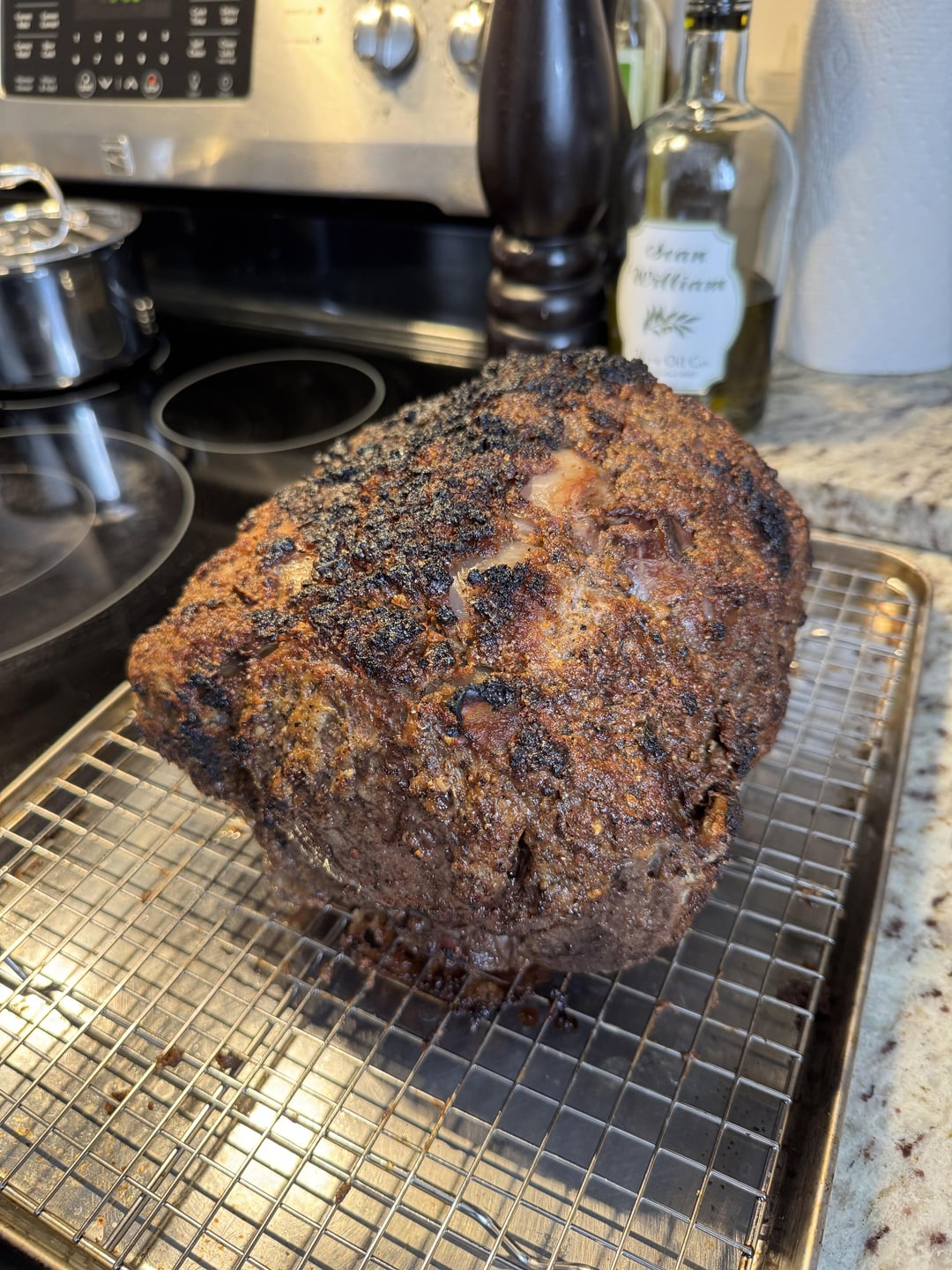Prime Rib Reverse Sear 250F 4 hours, Pulled at 118F internal then quick broil.
