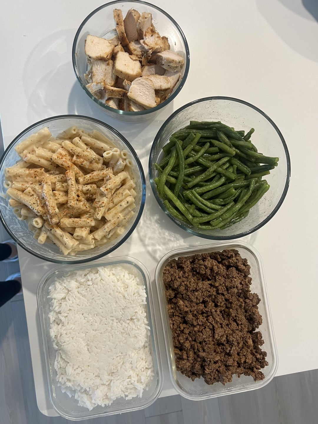 I used to do individual containers of prep, but I decided to try it out this way where we assemble our meal how we want when we’re ready to eat it.