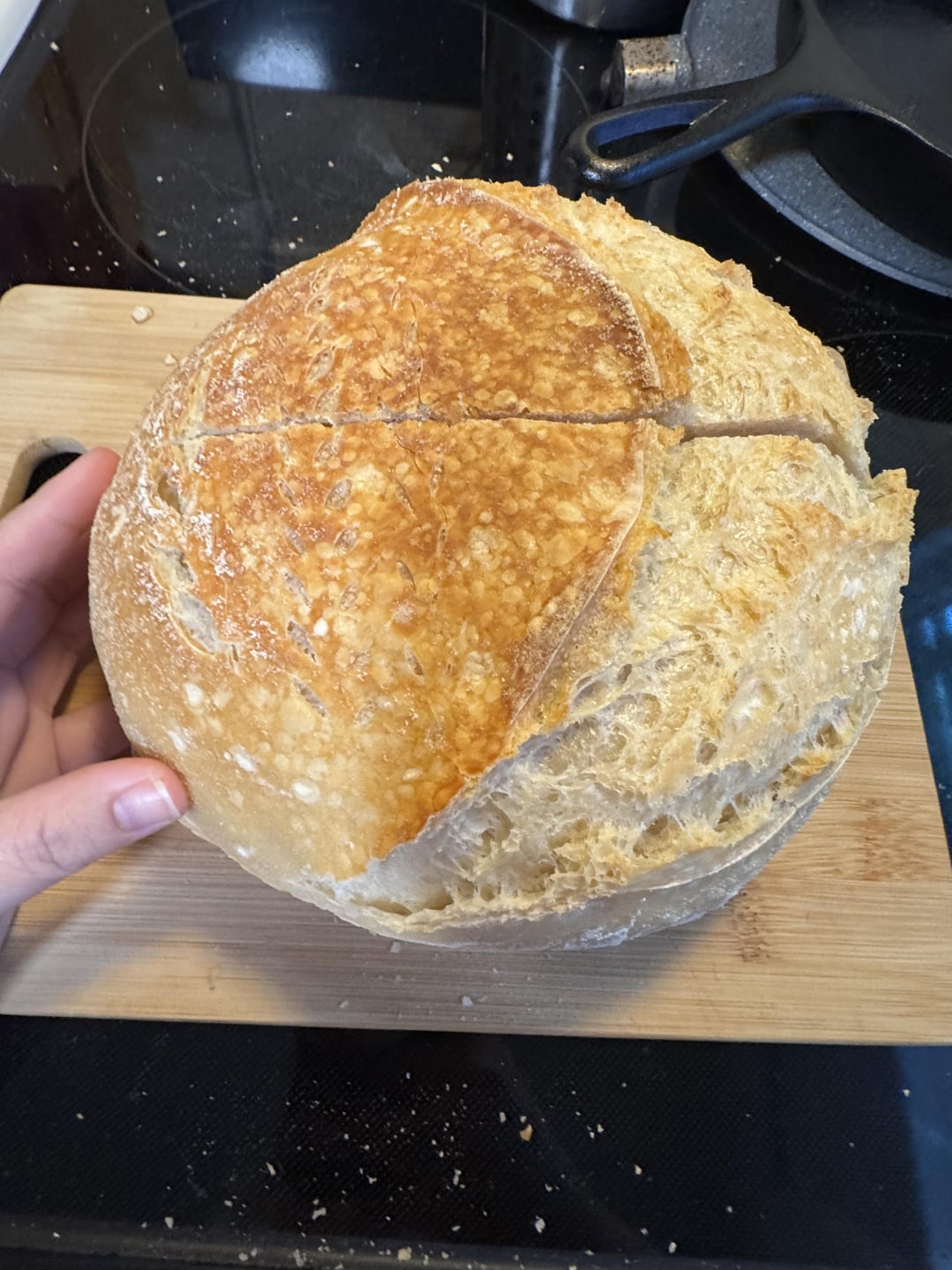 This is not my prettiest loaf but I’m just here to share that if you’re wracking your brain about autolyse, dough temps, s&f’s…. FORGET ABOUT IT!