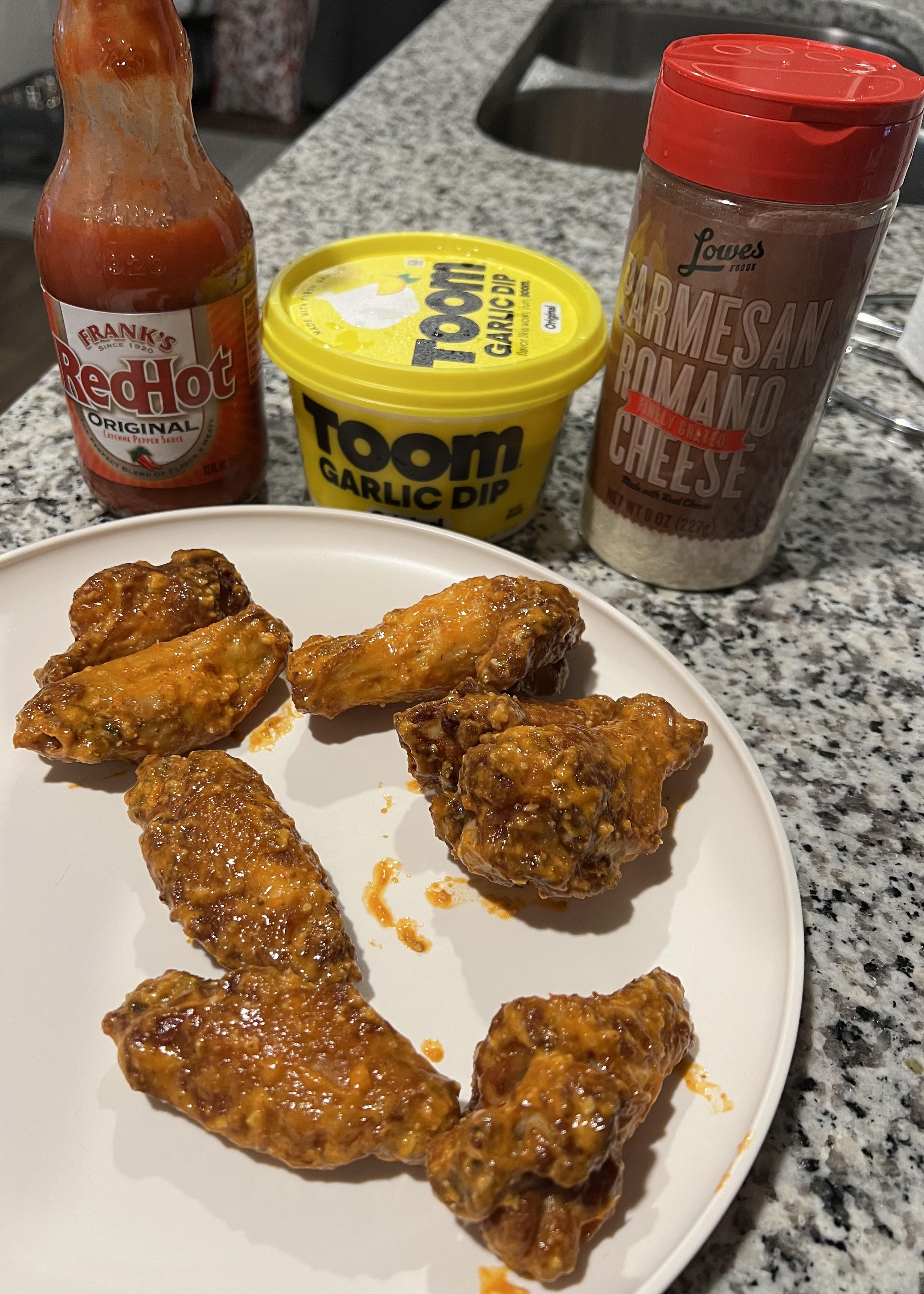 Sauce was only made with what’s in the picture, then threw it on some air fried wings. Better than most hot garlic parm sauces I’ve had while eating out