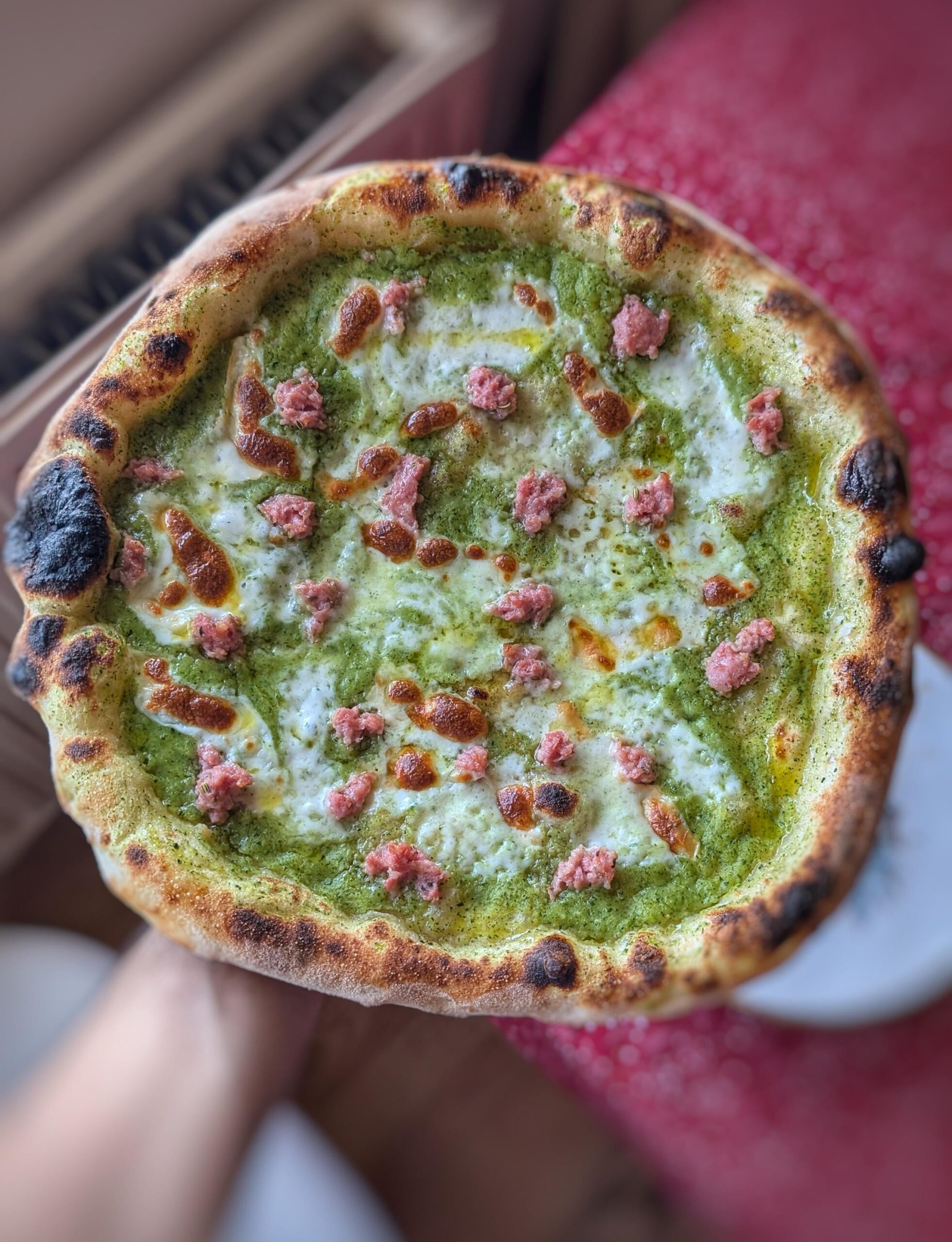 270gr dough ball, 32cm pizza (was touching the oven walls)