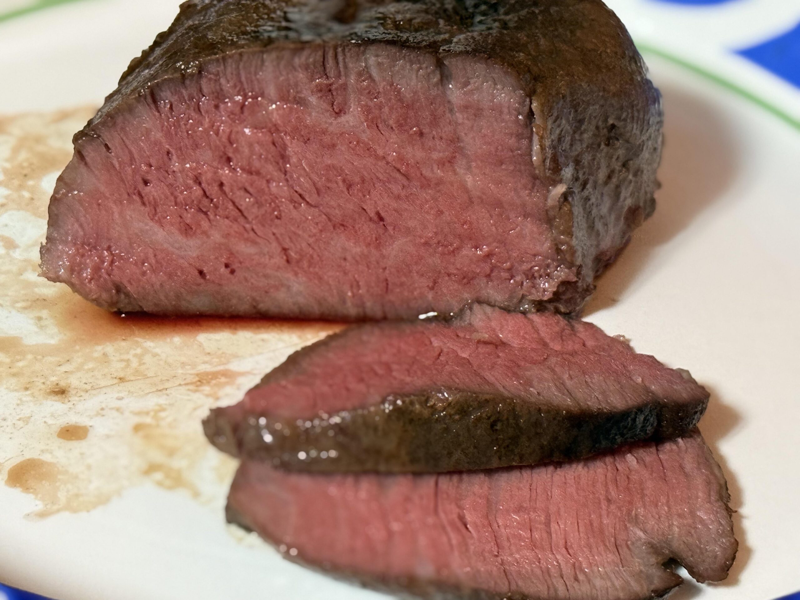 This is my second time using the sous vide method. I put this on last night when I got home from work at 135° and set it for two hours, unfortunately I fell asleep and it ran for three hours. However, it came out perfectly. In my opinion it’s cooked all the way through, but rare the way I like it I would never have been able to achieve this cooking it any other way. I then seared it in a very hot pan for about 40 seconds on all sides.