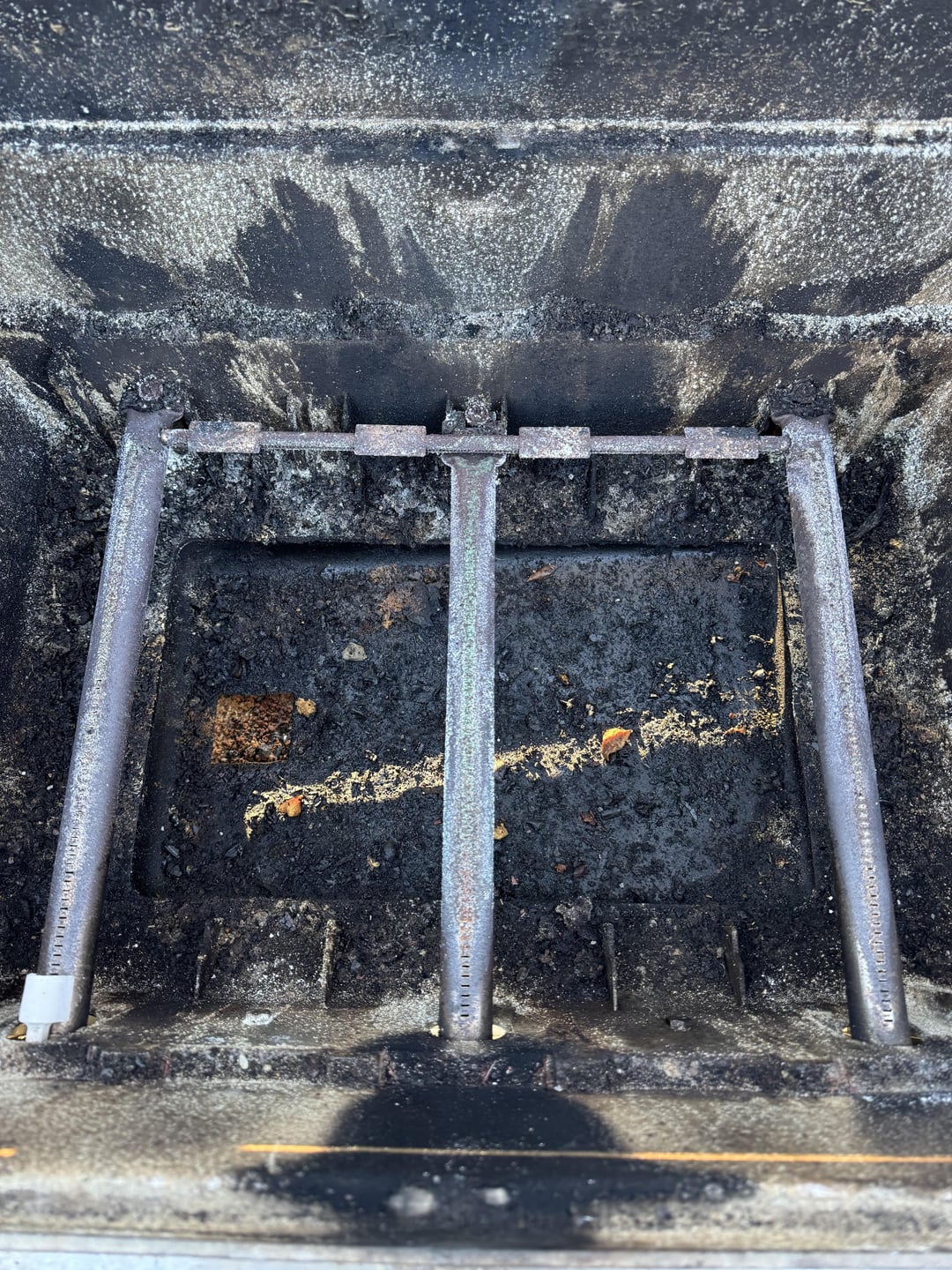 Take a piece of steel wool and scrub it down a bit. Then make sure flame holes are clean.