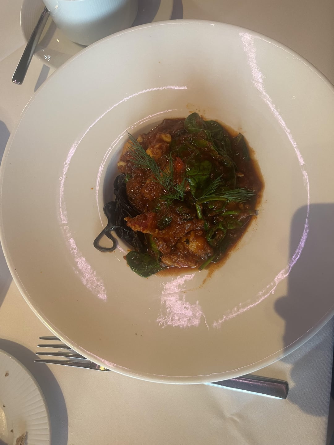 I tried some of the pasta and it was very tasty! The lobster was juicy and smooth and the noodles were filled with flavor. Squid ink pasta is definitely not my favorite kind of noodle, but it was good! A good 8/10!