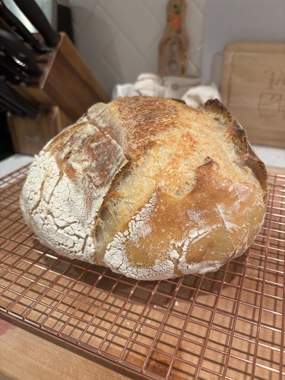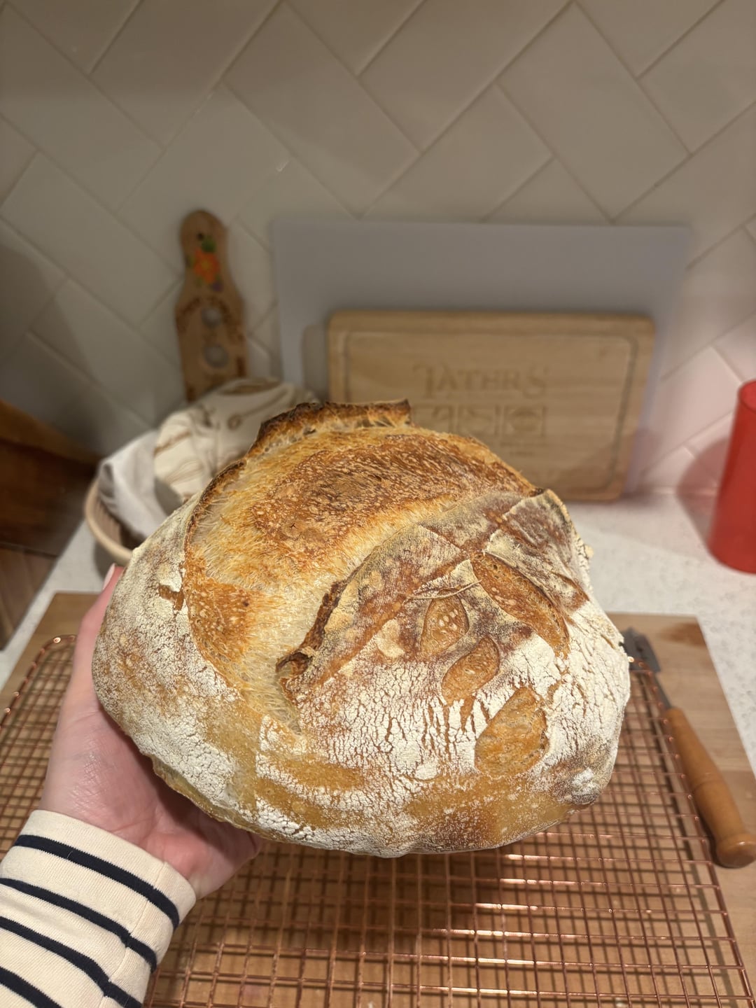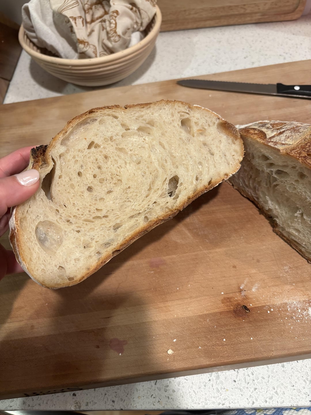 I’ve been experimenting with yeast bread for a few months, so I figured it was time to graduate to sourdough! Made my own starter (1:1:1, 75% AP flour 25% rye flour). Starter was 12 days old and doubling consistently for 4 days when I baked with it). Recipe I used was