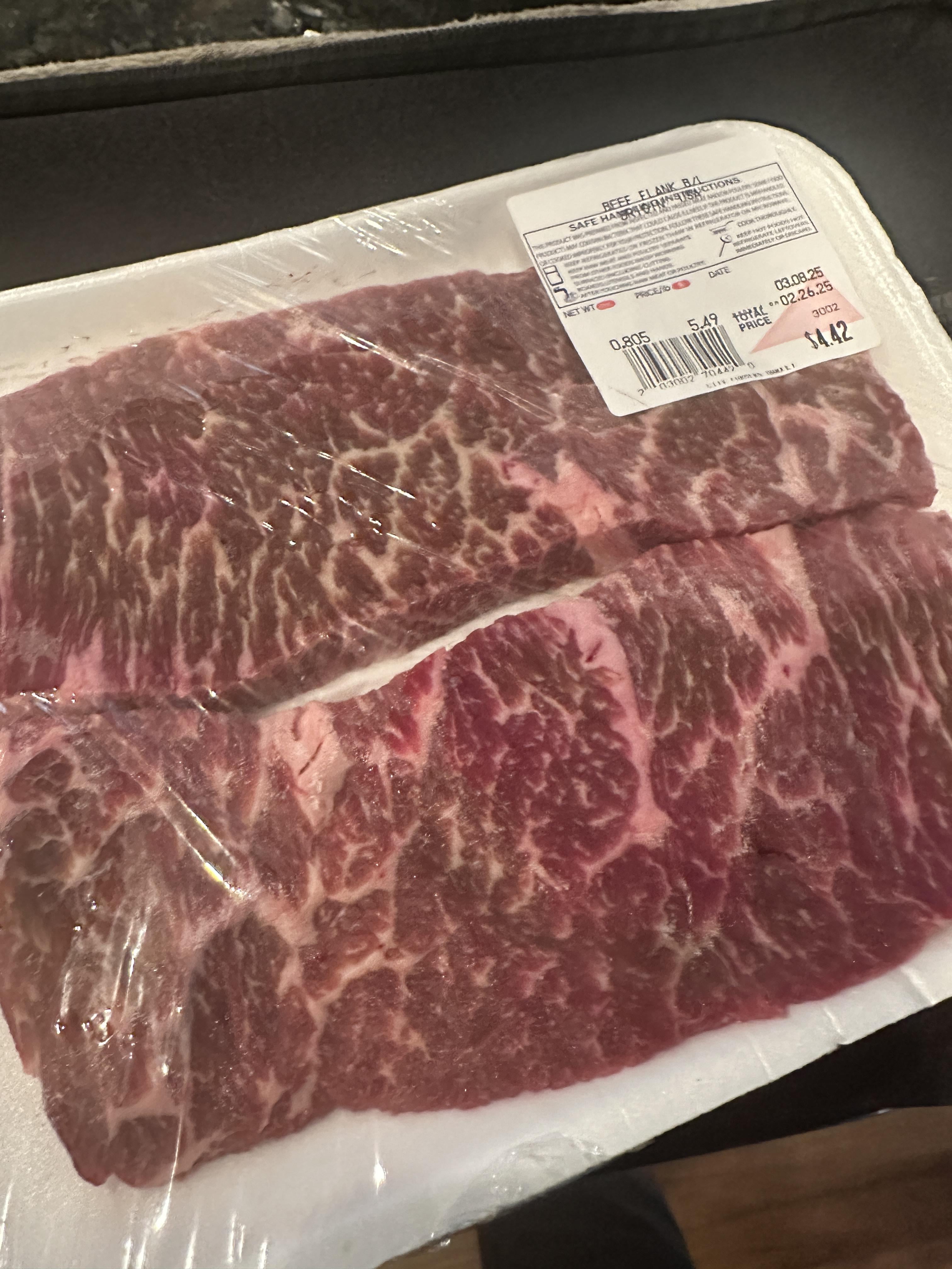 This says “Beef Flank” but doesn’t look like flank steak to me. Any advice or thoughts? by ItsADelawareThing 13 Comments Powerful-Meeting-840 1 year ago I think I would try it. But don’t think it’s flank. voyerruss 1 year ago Low and slow, then shred for tacos? werdna32 1 year ago It looks too be chuck flap aka Denver steak. They make great boneless short ribs! cabezon99 1 year ago flap, it seems they meant flap mildmistak3 1 year ago Whatever it is, the price is right. Id buy Opposite_Ad_1707 1 year ago Flank steak. I’d still tenderize that before cooking. an_edgy_lemon 1 year ago Kinda looks like chuck tender to me. wellsharpened 1 year ago Ranchera cut sirloin flap, sits right next to flank steak JamieAmpzilla 1 year ago It’s Denver/Zabuton steak, cut from the Chuck under the shoulder blade. Not remotely like flank steak. Existing-Silver-9492 1 year ago Definitely edible at $5.49lbs! Far_Zone_9512 1 year ago Looks like short ribs. Lol, I literally just bought a pack of 8 about an hour ago. Legitimate-Produce-2 1 year ago Mmmm marbling Additional-Series230 1 year ago Denver cut, chuck flap, boneless short rib, etc.Write A CommentYou must be logged in to post a comment.