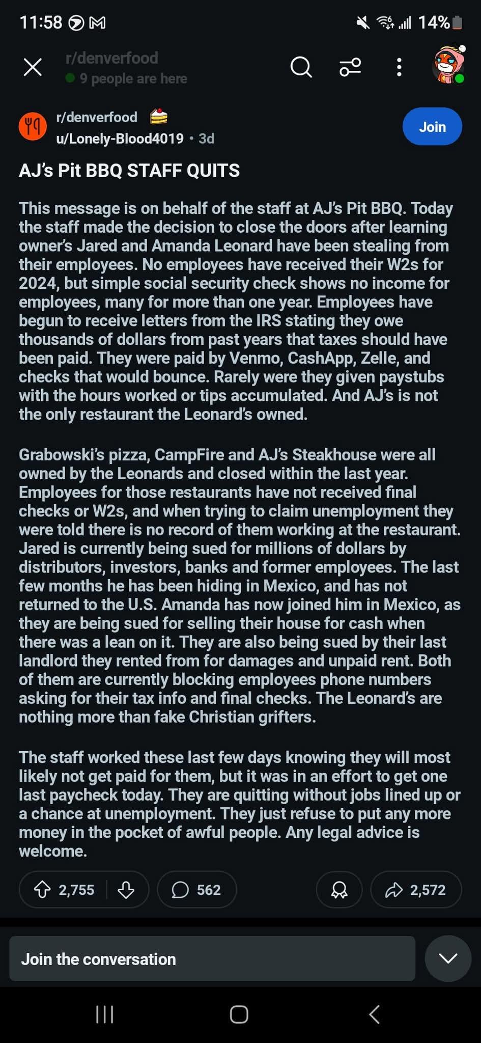 I’m sorry for the people that got caught up in this, but if you were still working for AJs BBQ while all this was ongoing, then you either have had your head buried in the sand, or are mentally handicapped.
