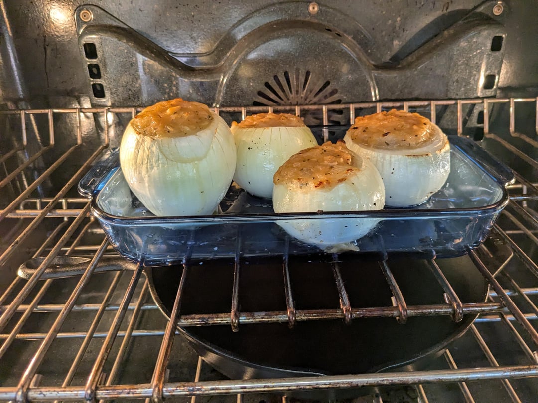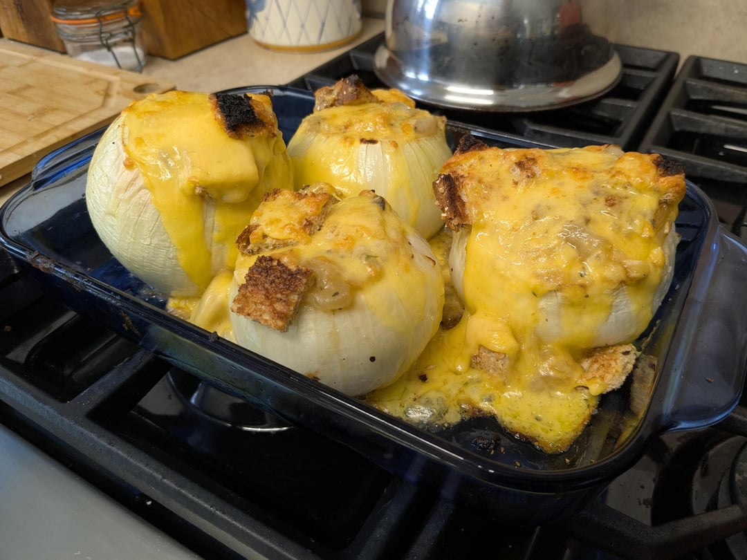 I followed this recipe: https://www.thefoodinmybeard.com/french-onion-stuffed-onions/. I used Mayan Sweet onions rubbed in olive oil, salt and pepper. There is nothing quite like an edible bowl!