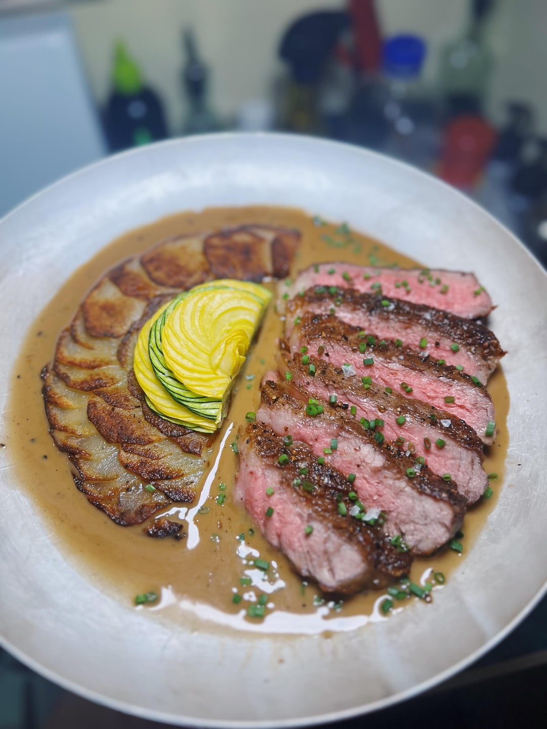 How are the potatoes done? What’s the garnish on top? Did you use fine ground pepper? What liquor did you use? Could be the picture but the color looks a bit off bit any change of ingredients could do that – not a judgment as I use rum for my au poivre instead if cognac