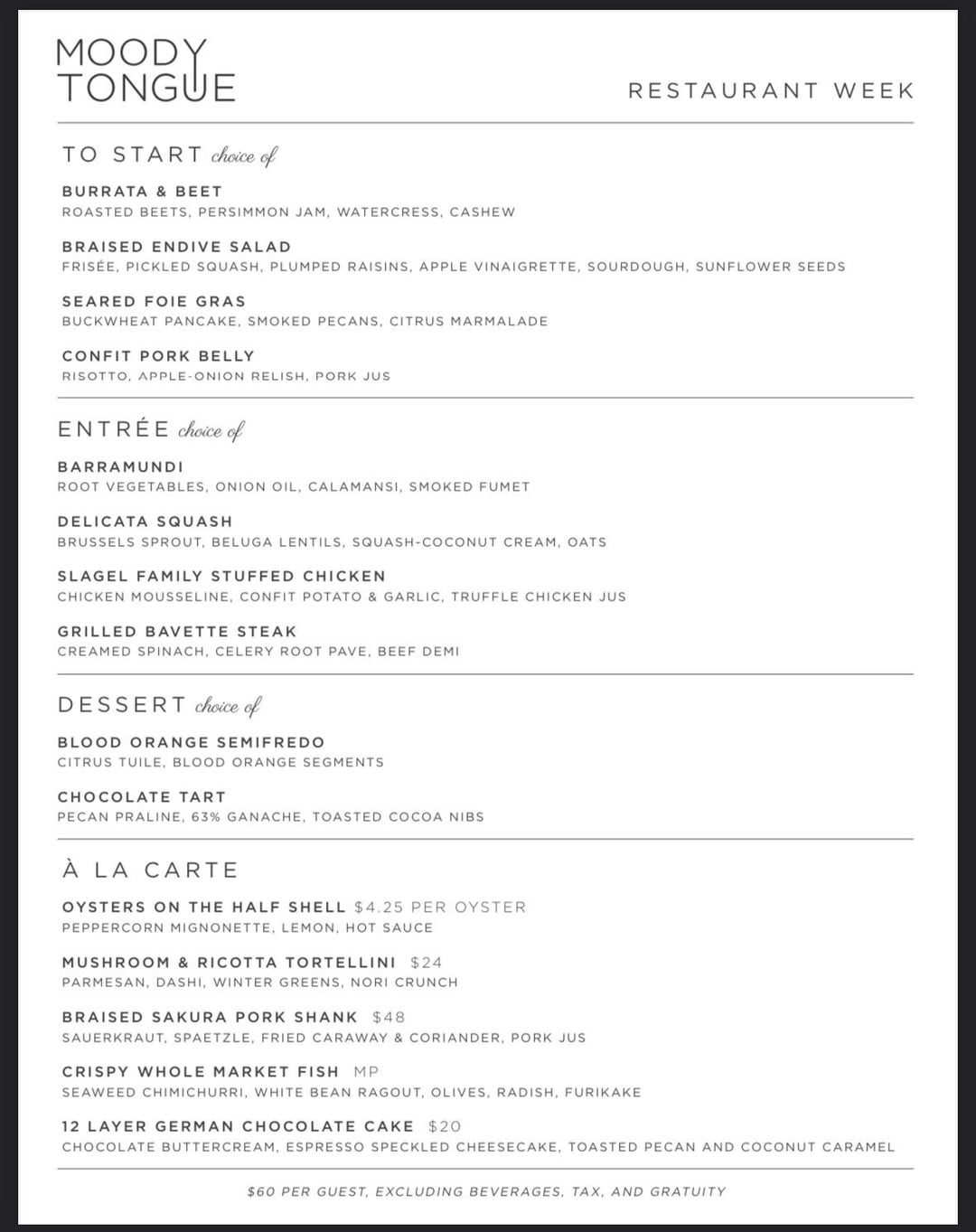 We also tried the CRW menu. The foie gras was great; the endive salad had good potential, but was over salted; we thought the chicken was very good, while the steak was just okay (kinda boring and bland); the chocolate tart was really disappointing (most just hard, dry crust), while the semifredo was light and refreshing. Service was outstanding. But not likely to go again based on the food being such a mixed bag.