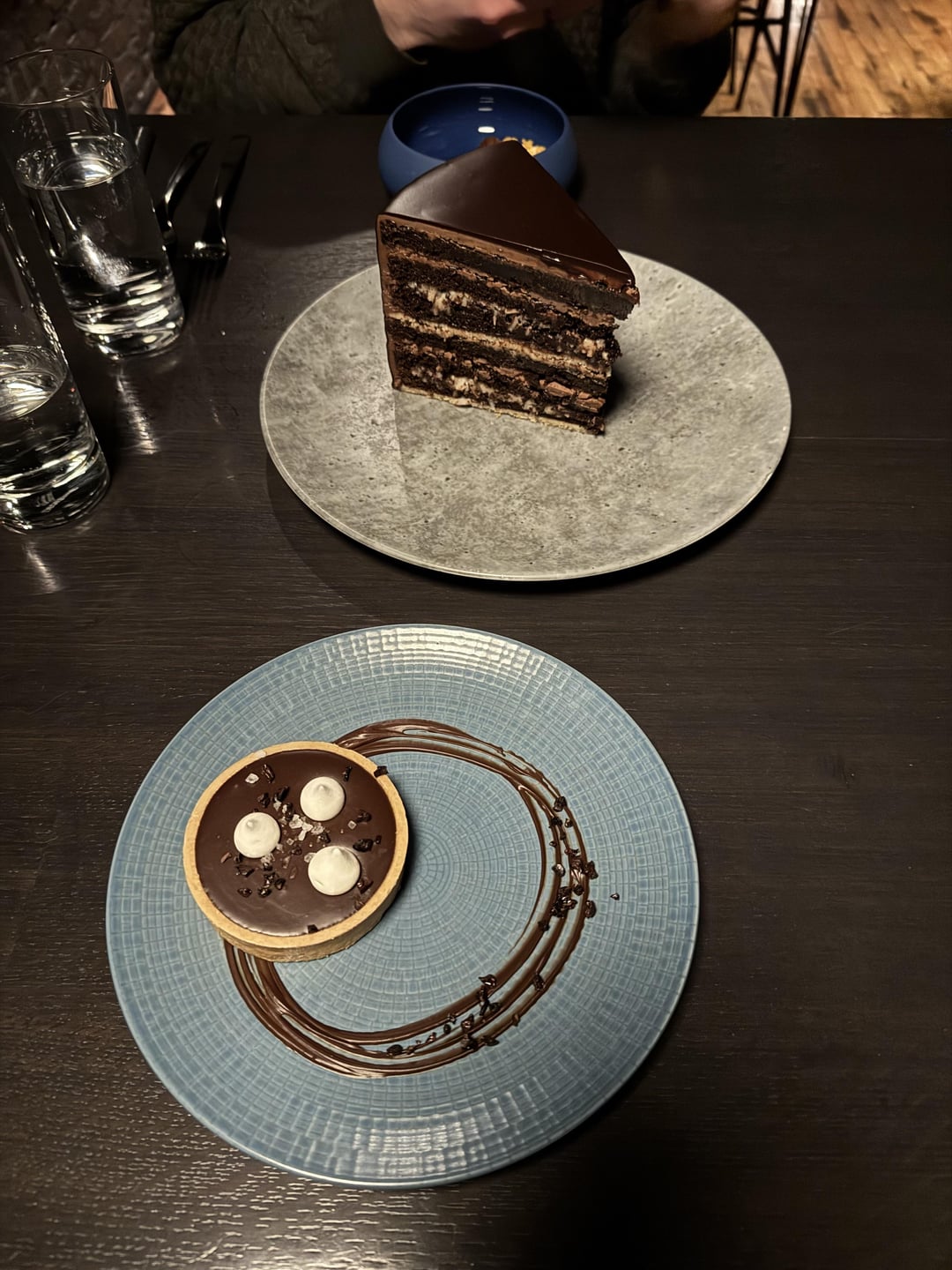 - Chocolate tart + 12 layer cake (the cake was incredible)