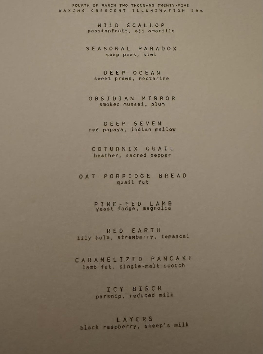 Went in July 2024 and have to say I would not have been happy with this menu compared to what I got on mine. Lost the menu but looks like they changed all my favorites except the Mirror.