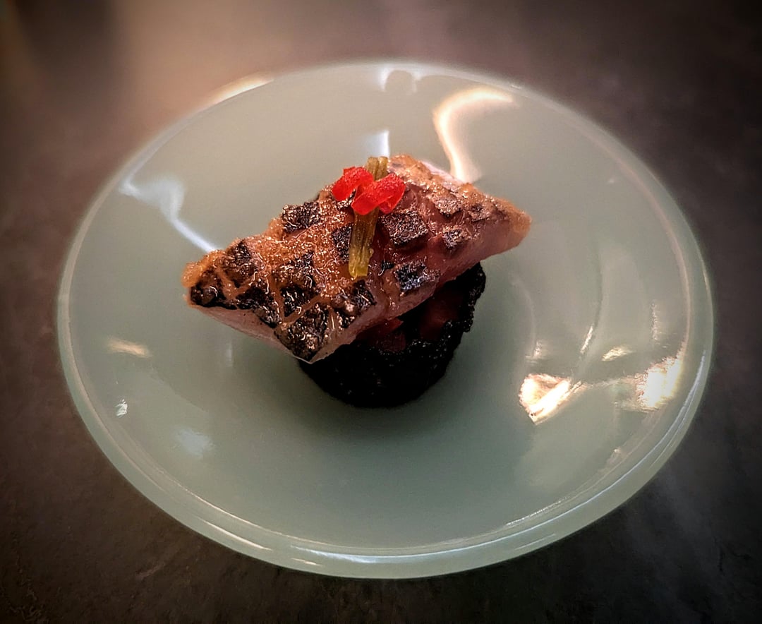 - Mackerel, chilli, jalapeño, red pepper, croustade, ponzu