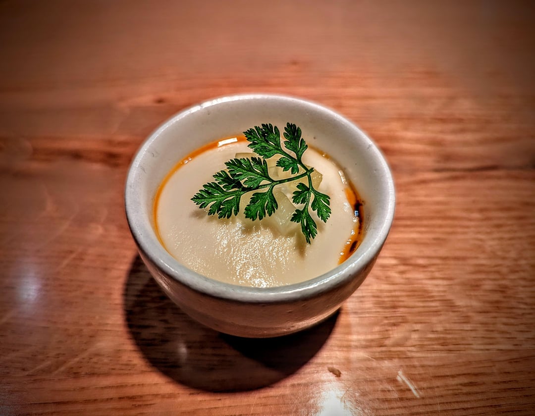 The downside of 20 (thereabouts) covers being served the same food at the same time means that there's no room for an adjustment in pacing. What could take two hours for the number of courses on offer will take double that. In addition, if what you want out of a restaurant visit is peace and quiet, you likely won't get that. In the main dining area, where you spend most of your visit, you'll be shoulder to shoulder with other diners. Even if those next to you are reverential introverts, all it takes is one loud diner to disrupt the peace. Voices carry in this restaurant.