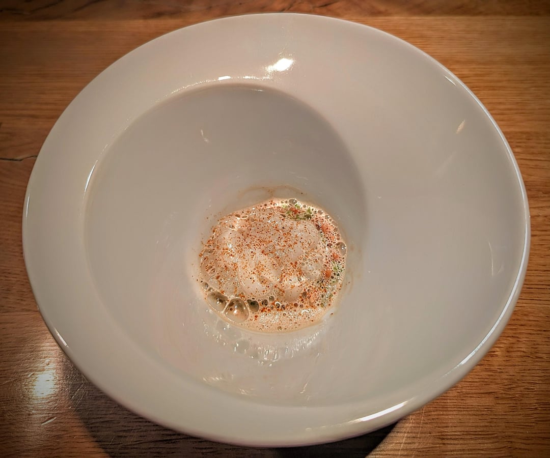 All of these are things to note, but ultimately – to me at least – come secondary to the food. Blow me away with tastes and textures, and the rest fades into background noise. It wasn't until the squid tagliatelle that the meal really started to get going. This came after five snacks and four courses, with the snacks being preferential to the courses; the mackerel tartlet was a good opener, fresh and slightly acidic, and preferable to the gauntlet of dullness that was the first four courses (albeit for the fruit bread). The trout roe added absolutely nothing to a rather lovely fruit bread, given just how strong the latter was. The N25 caviar was similarly wasted on the scallop dish. One-dimensionality reigned, so absent were the beginning dishes of any complexity. This didn't change with the squid tagliatelle, but it did improve. With a base of garam masala and cream, and hints of coriander, the squid tagliatelle was the best version of a Curry Pot Noodle that I've ever had (this isn't a glib comparison. I think Knappett knows what he's doing, and I'm here for it). It was nice to have something vibrant and fun, with a certain depth of flavour (barbequed peanuts were a suitable if standard addition, on both a flavour and textural level) that had been missing for the first half of the meal.