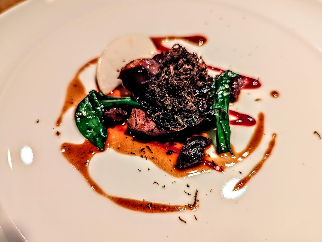 - Duck ham, heart, turnip, damson, wild garlic, black truffle