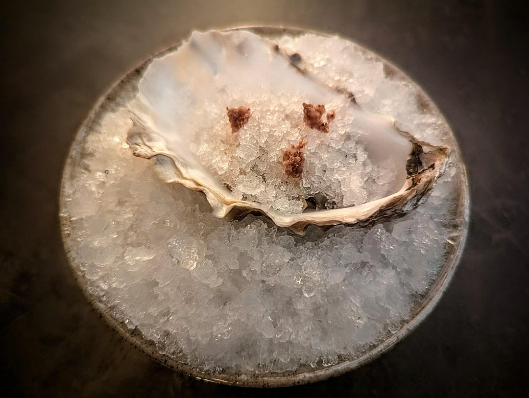 - Oyster, elderflower, sour cream, red meat radish, meyer lemon