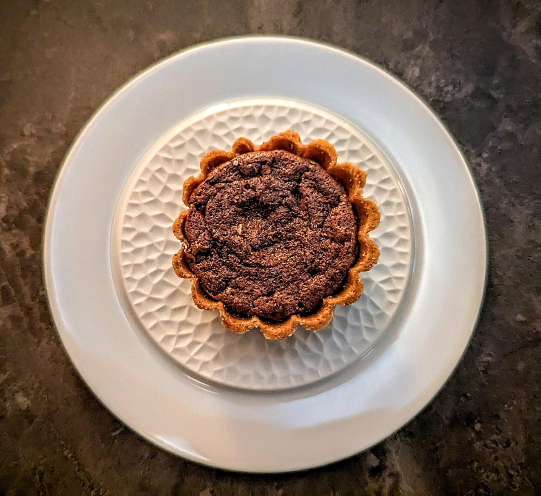 - Chocolate tart, cep, sea salt