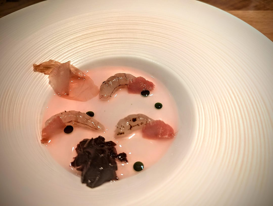 - Torbay shrimp, rose, fig leaf, rhubarb, dulse
