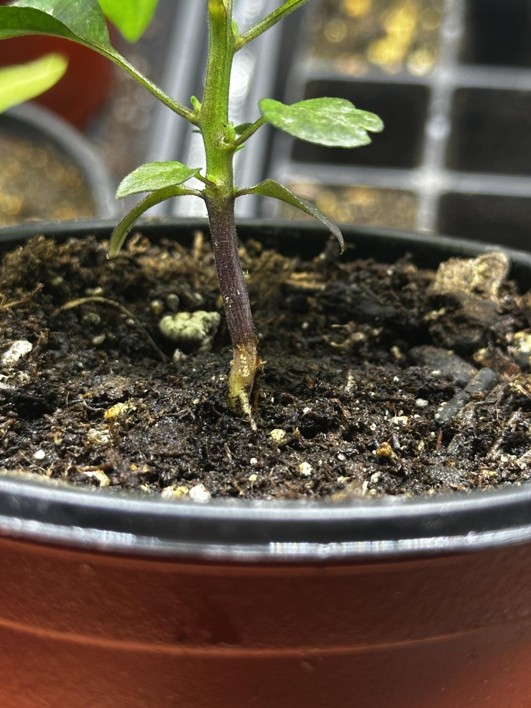 Hey everyone! Me again, I am about 100% certain the first picture is damping off, but now I’m starting to worry about some others with discoloration at the base of the soil. Hoping for some advice or what I could do to help. First picture is all the seedlings, and next are some of their stems.