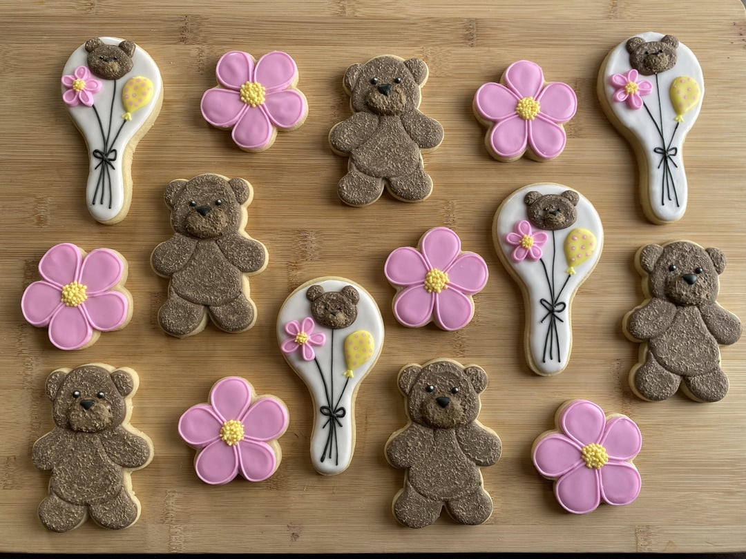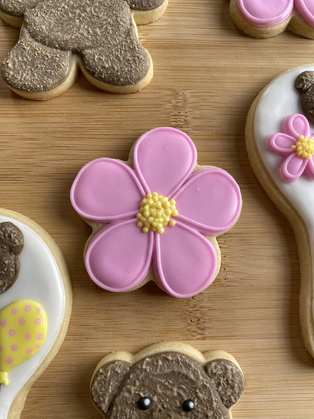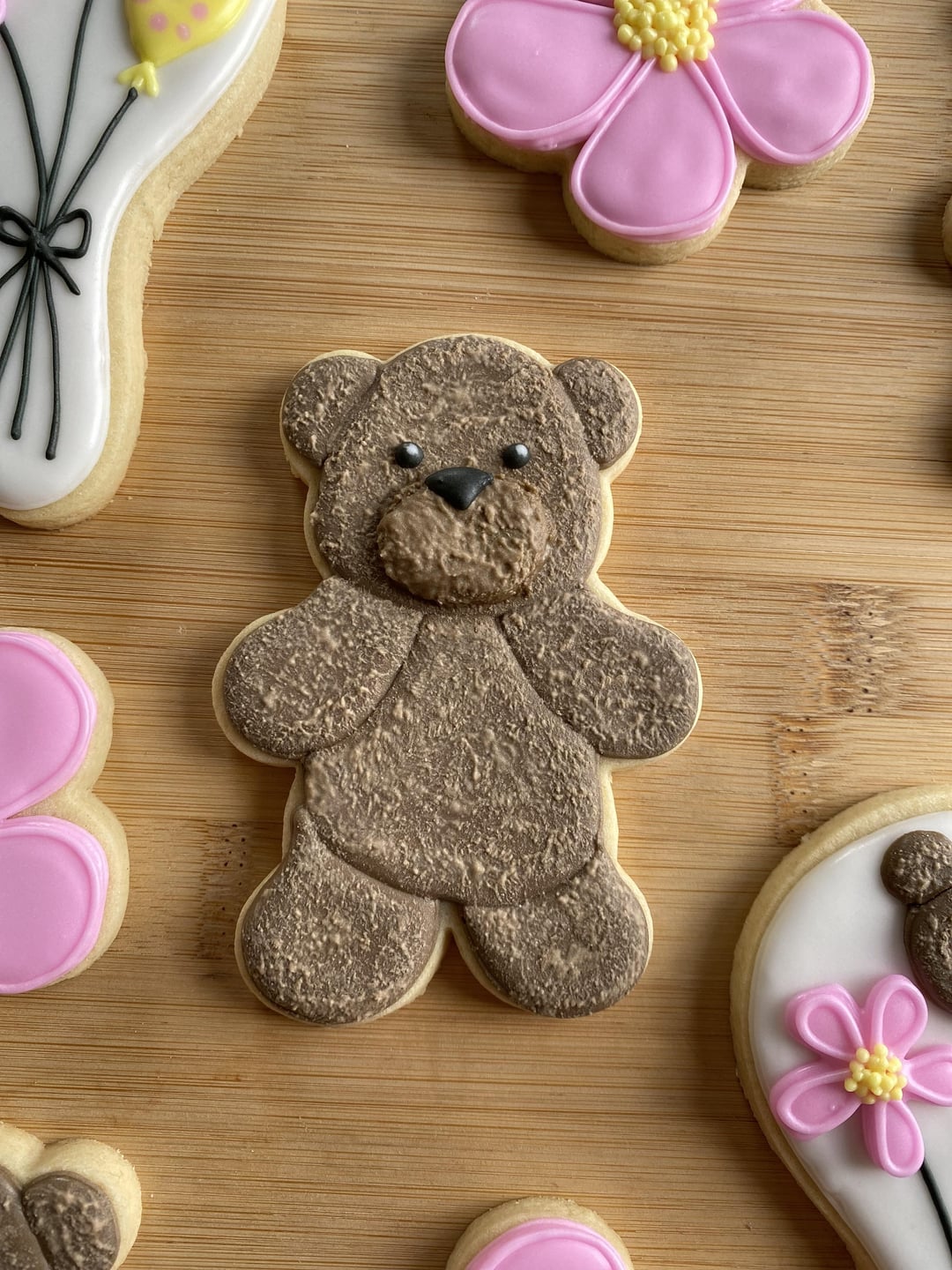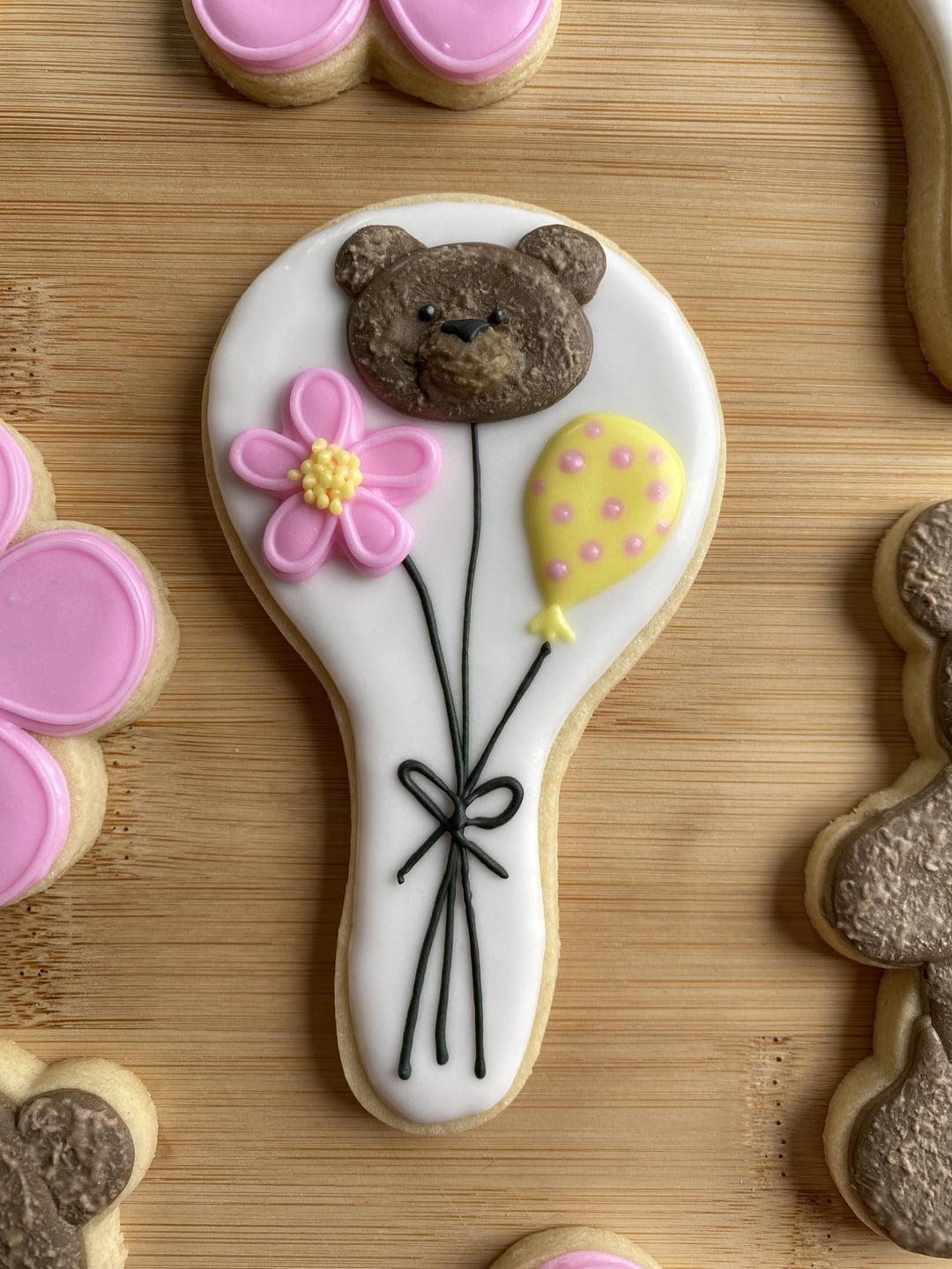 My ultimate goal is to get good enough to start selling/taking custom orders. That being said, I’ve been practicing a little bit – playing around with different textures and techniques. Today I tried wet on wet (yellow balloons), attempted to make the bears look fuzzy with a paint brush, and made transfers for the first time (pink flower balloons and bear heads). What do we think?