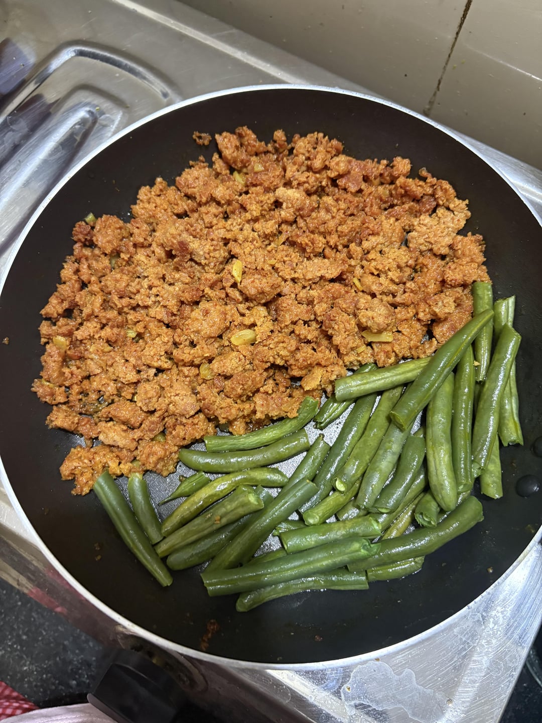Chicken keema rice and some veggies.