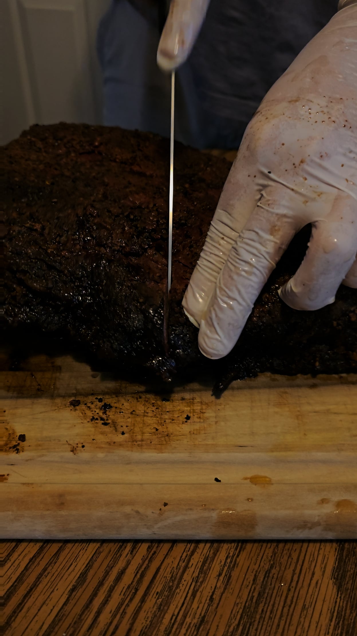 You did what most do. Use a dull knife and squeeze the brisket. But +1 for not having the black gloves.