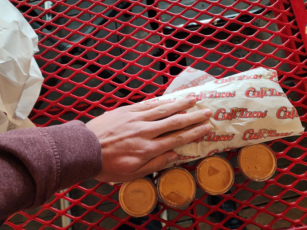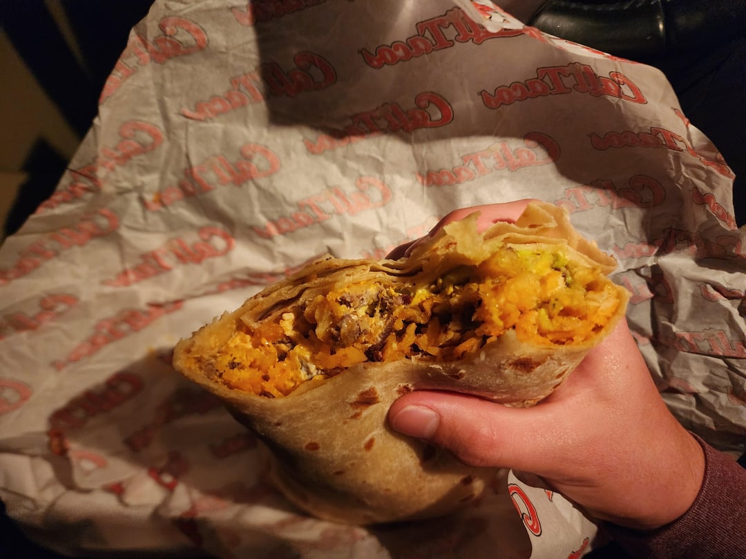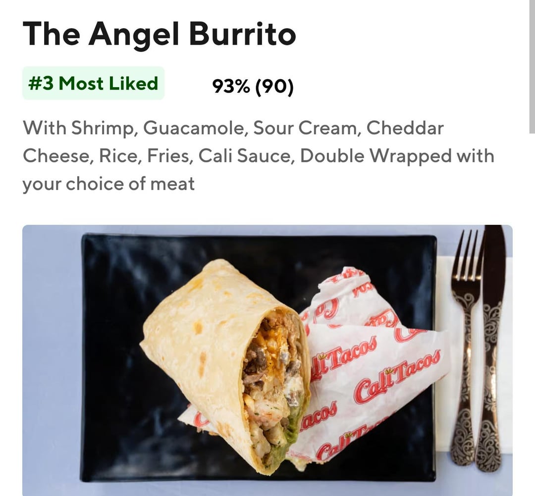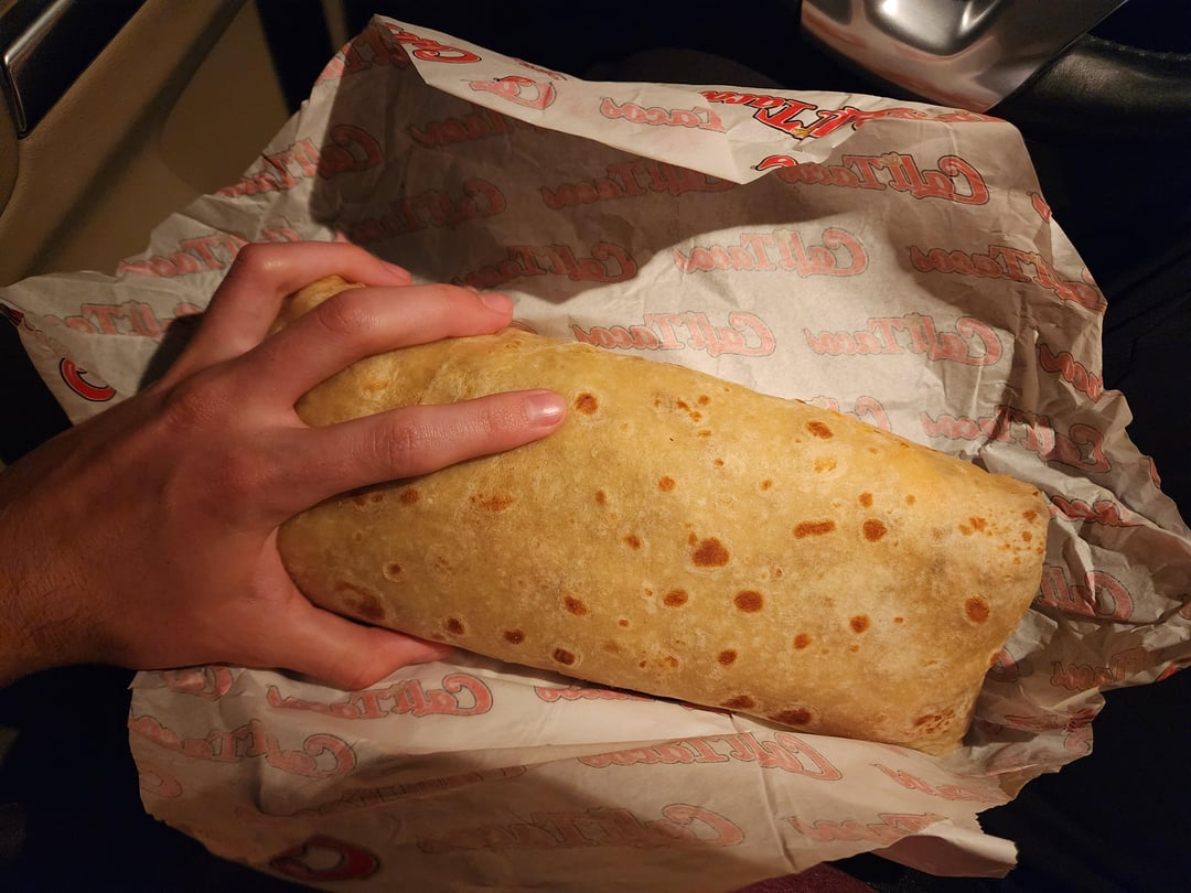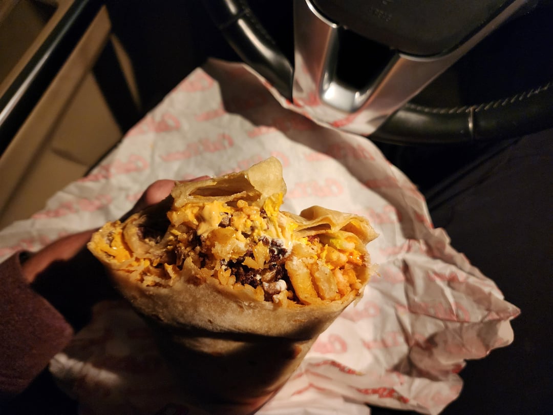 I just went to this place for the first time and while I always eat everything I get, this time I was only able to eat half before feeling stuffed (feeling more than after a chipotle burrito.) My choice of meat was carne asada, but it also had lots of fries, rice, guacamole, sour cream, cheddar, and some shrimp. Two tortillas.