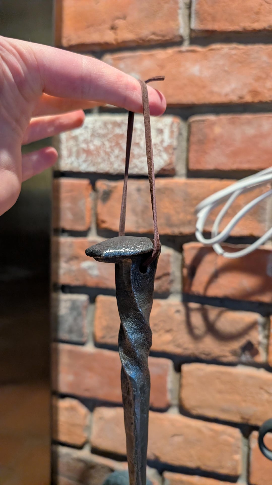 I run a small home blacksmith shop where some grilling also occasionally transpires. Here’s one of a few left-handed (though easily used with the right) “Steak flippers” hand forged from old railroad spikes. Also featuring a lanyard for hanging if desired and an integrated bottle opening notch!