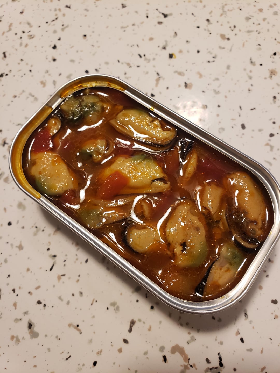 Fucking delicious. Wowza these were soo good. My only experience with canned mussels have been TJ and don't get me wrong… I like them… but sometimes their texture is too squishy for me. I didn't have an issue with these at all. They had a bit more give to them. And the flavor was delicious!! It's definitely spicy but it's like a punch-you-in-the-face-wake-you-up spice. I had this over some white rice and I definitely reccomend.