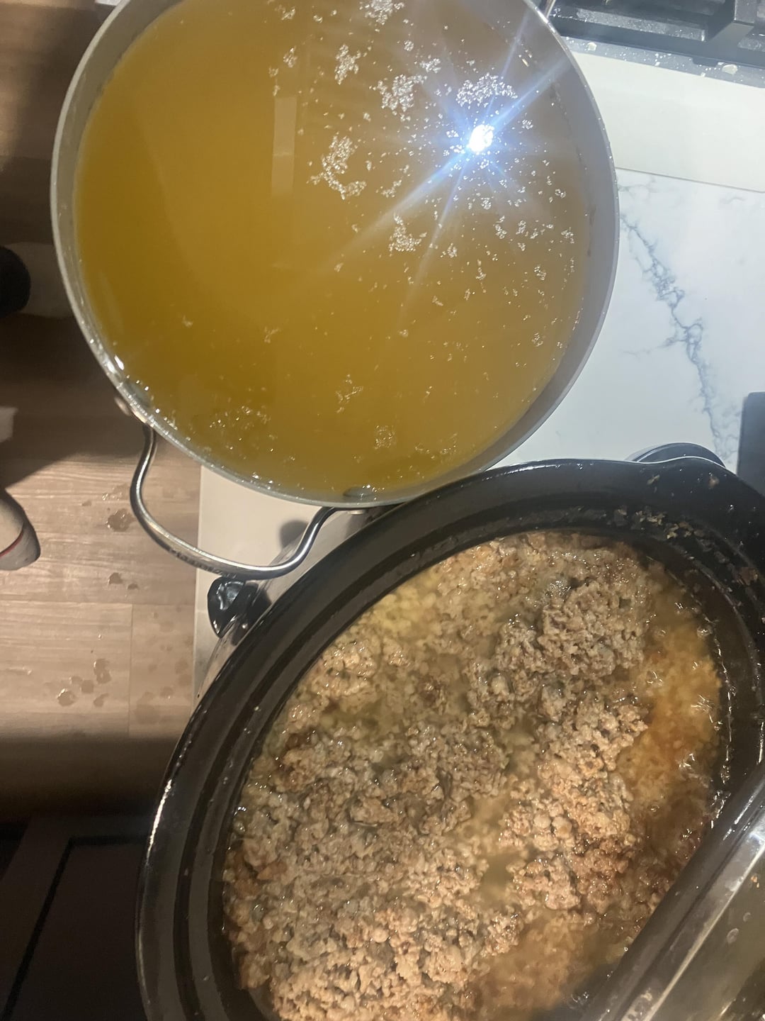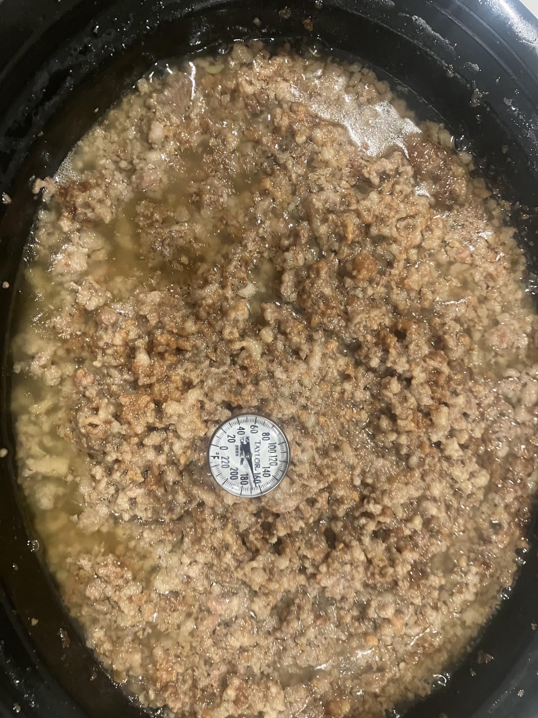 Had myself a little tallow making party tonight after grinding some brisket trim for burgers earlier. 30 briskets sold last week, which fed over 400 people, yielded a whole LOT of trim and tallow. At least ten pounds of mince and 20 or more pounds of fat for rendering.