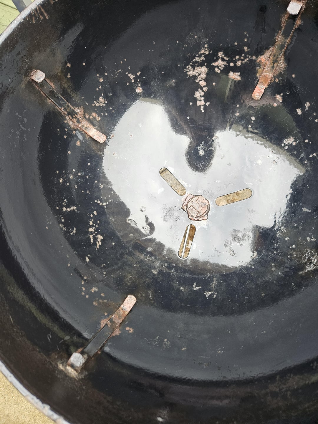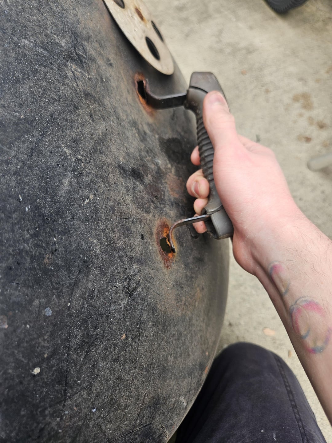 Before anyone tells me not to buy it, too late lol. I got this on Facebook marketplace for 30 dollars. I've called Weber and asked about warranty, it's not covered. I am not necessarily in a great financial situation and buying a new grill is not an option. My current plan is to sand the handle, weld it back, and then find a way to unscrew the bottom vent and replace that with a new one. My other 2 problems are the fact that the lid is actually dented on the top duct and has too much airflow, and the corrosion on the bottom bowl itself. I think I can gently round out the lid again, but what can I do with the corrosion on the bottom? Also just any tips in general for this situation would be greatly appreciated.