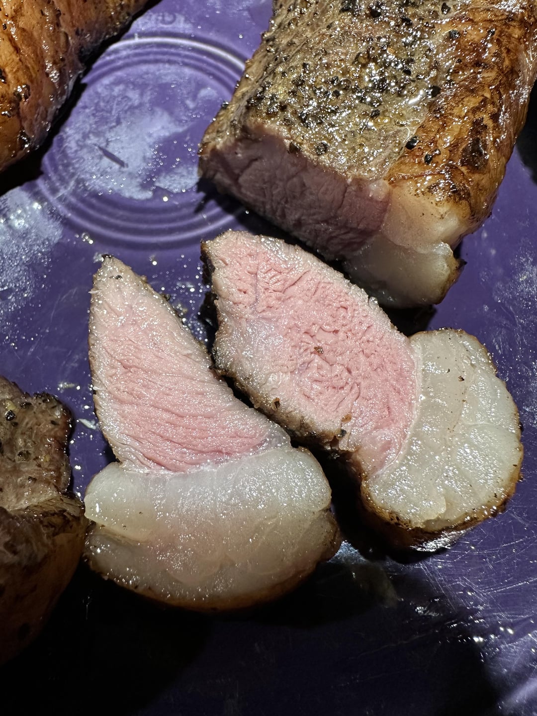 u need a harder sear on that fat.