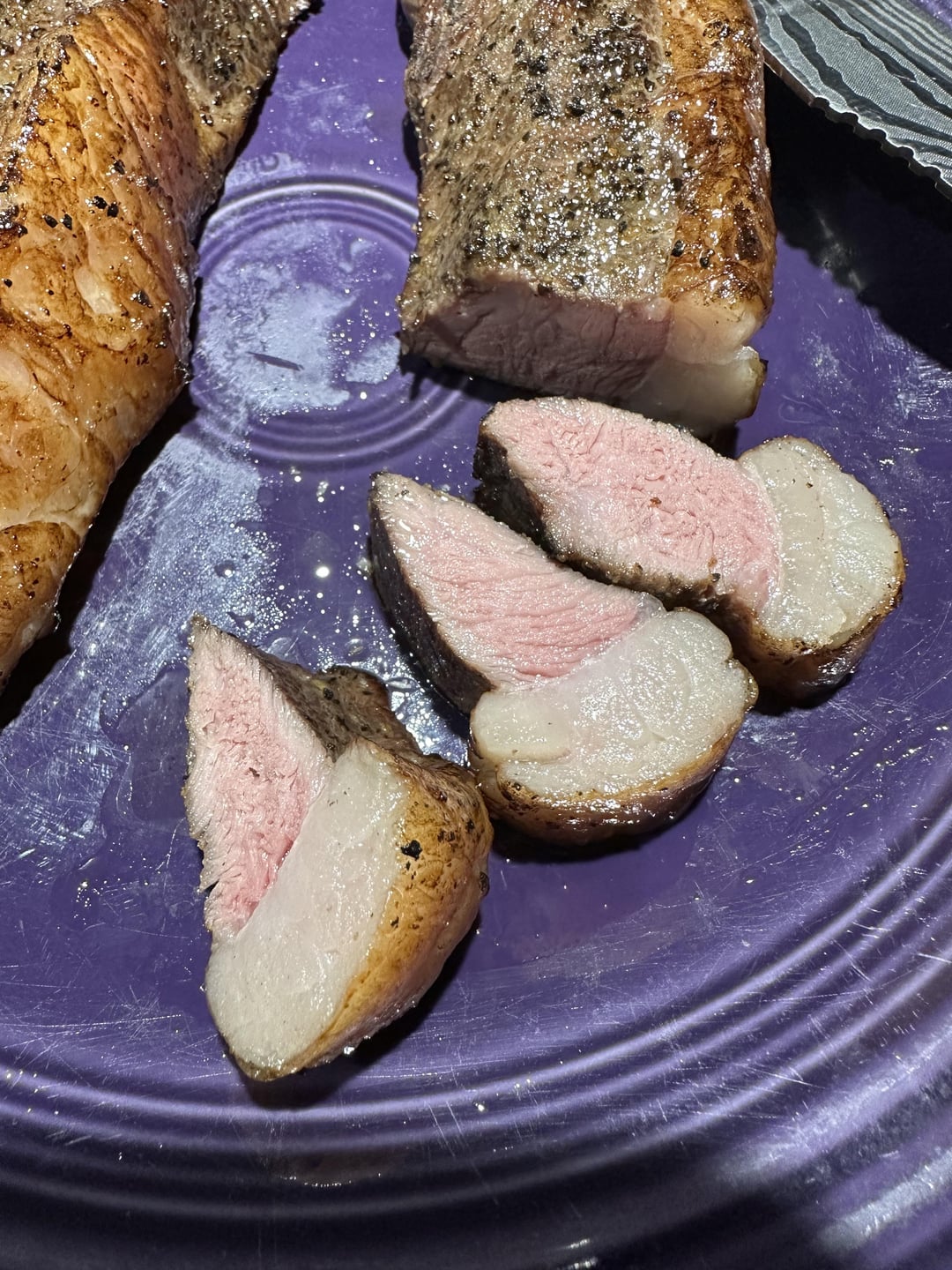 These were pre-cut when I bought them. 131F for 3 hours. The meat to fat ratio is crazy.