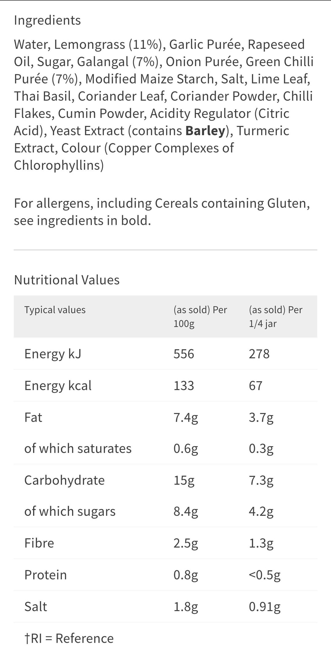 Also confused on the exact ratio of ingredients listed together "Garlic Pureé, Rapeseed Oil, Sugar, Galangal (7%)" <—- this is just guesswork for these ingredients, but combined no greater than 7% total of recipe?