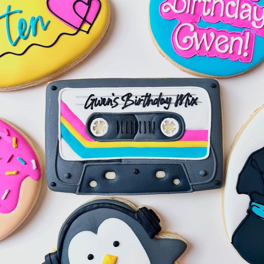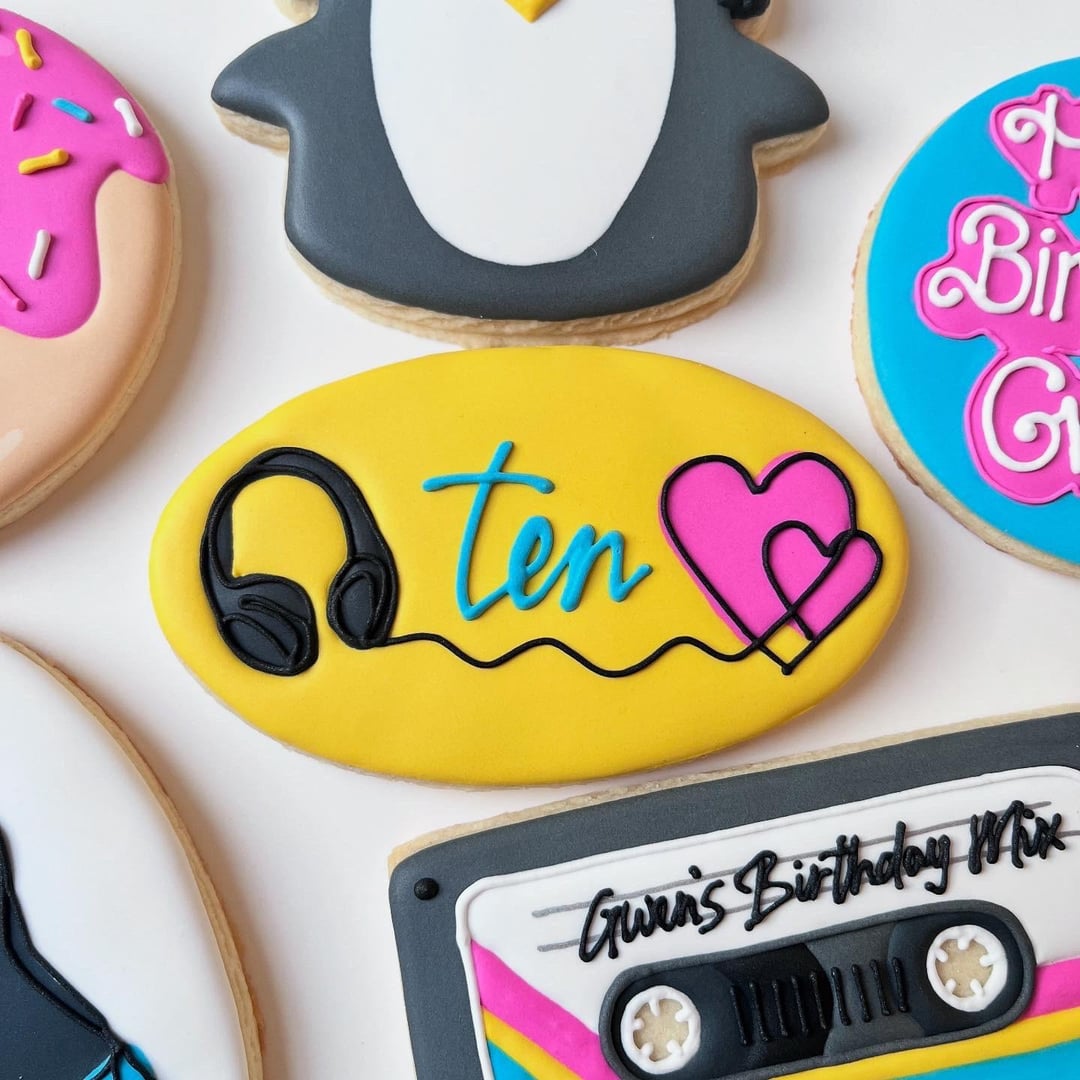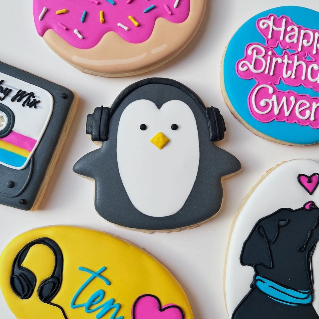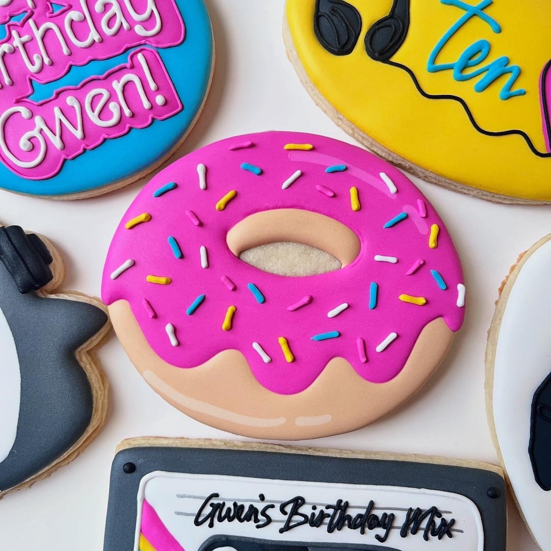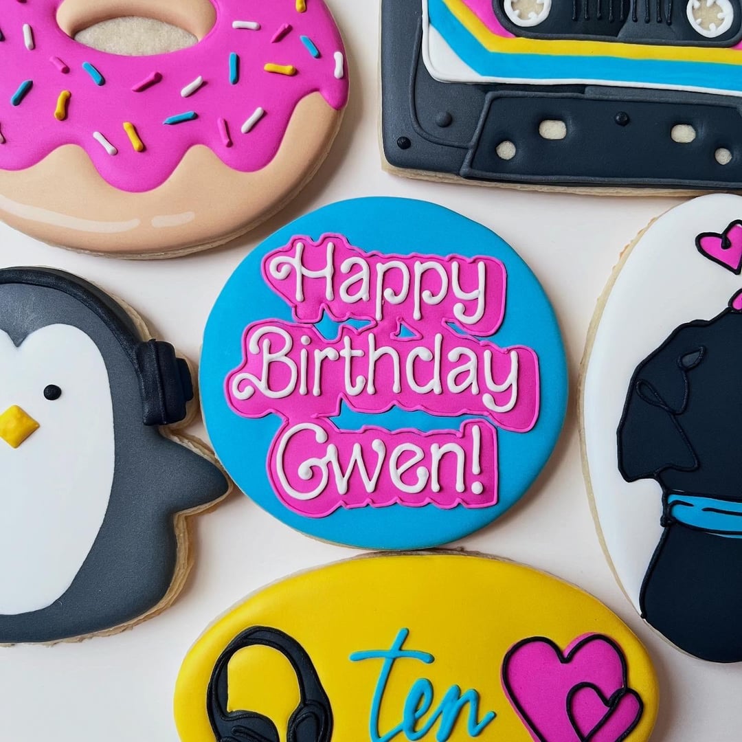 I call orders like this “favorite things” sets. The birthday girl’s mom told me: “Gwen. 10th birthday. Favorite color is sky blue. Loves donuts, music, Barbie, penguins, and dogs.”