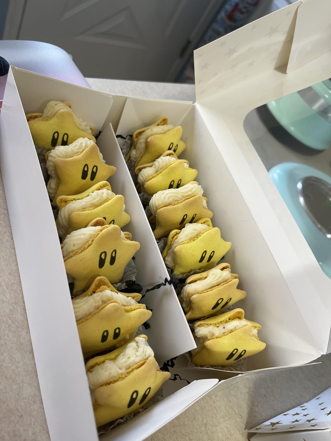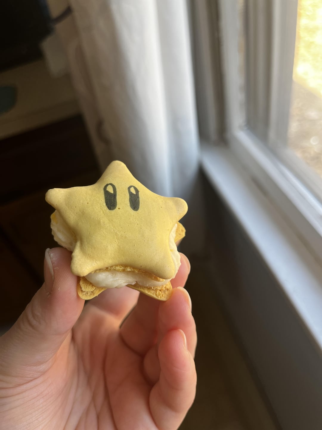 Your macaron are gorgeous, and if you wanna take these to a more professional level, consider piping your star filling in the shape of the star. It’ll create a really sharp, attractive look that’ll look more finished overall!