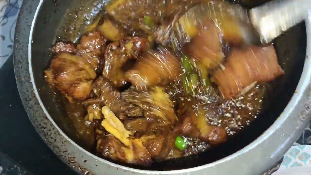 spicy palak gosht cooking