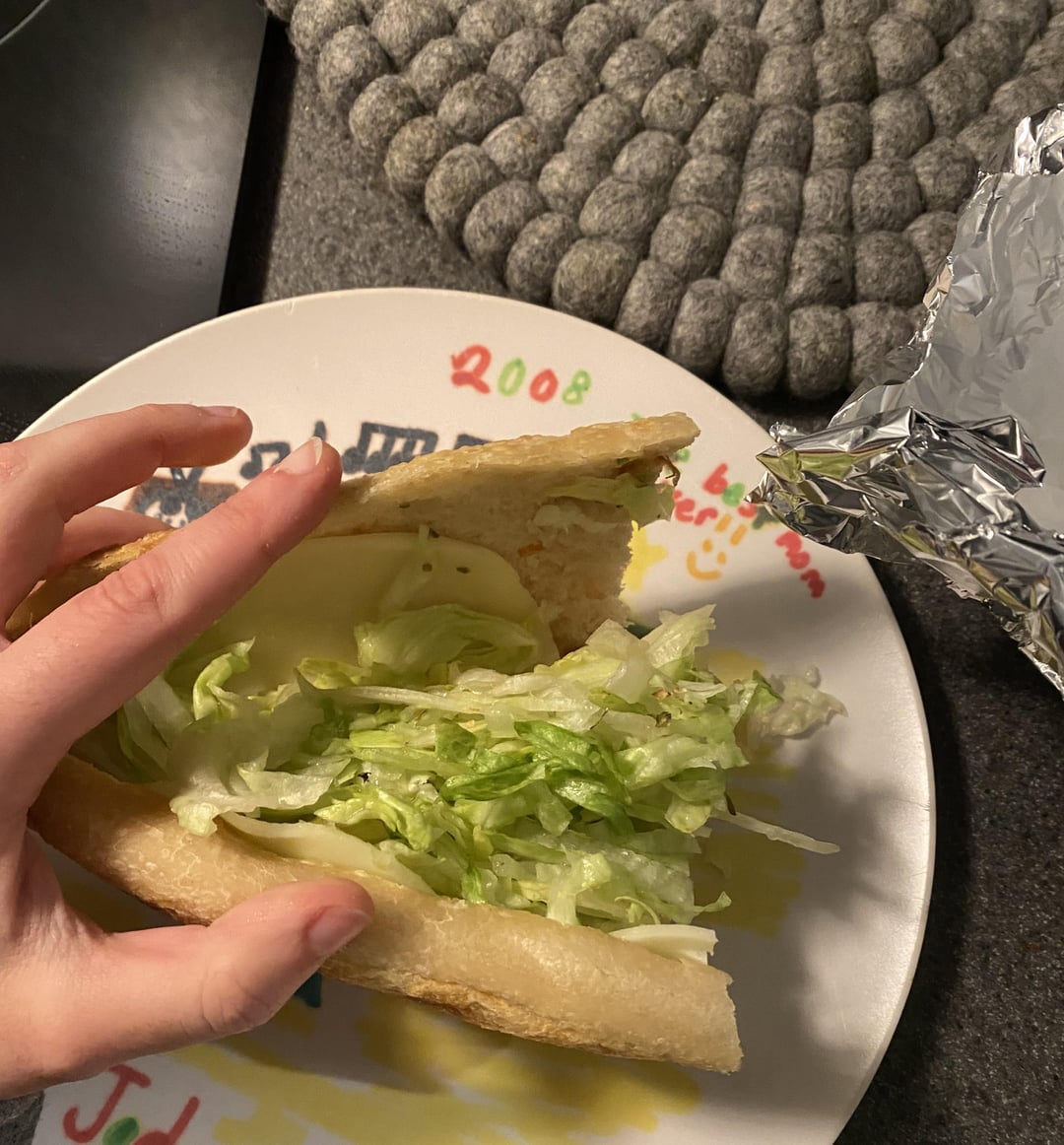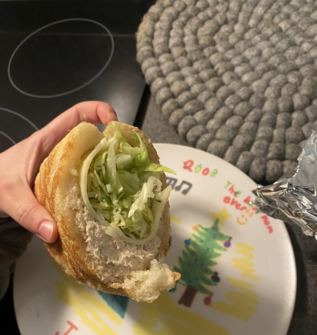 Half of a tuna sub from local pizza shop. Has lettuce and cheese inside (two slices in this half I think? But I already finished the half so I can’t fully remember), and I wouldn’t doubt it if they mixed mayo in the tuna? I would want to say it’s like 500, but pizza shops are typically pretty calorie-dense.