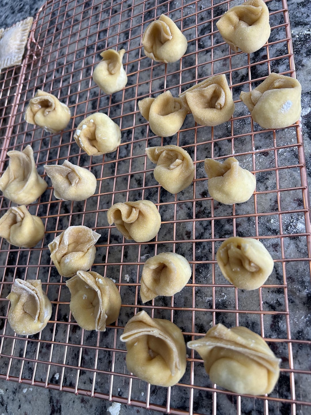 I was playing with pasta shapes again and made myself some ravioli and I think it’s tortellini? I don’t know I could be wrong it’s the same homemade ricotta cheese filling that I put in the ravioli. I wrapped it kind of like a wonton if that makes any sense? I also made some fresh carbonara out of this batch of pasta (not pictured)