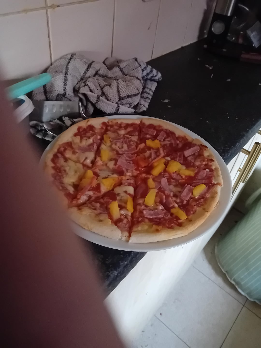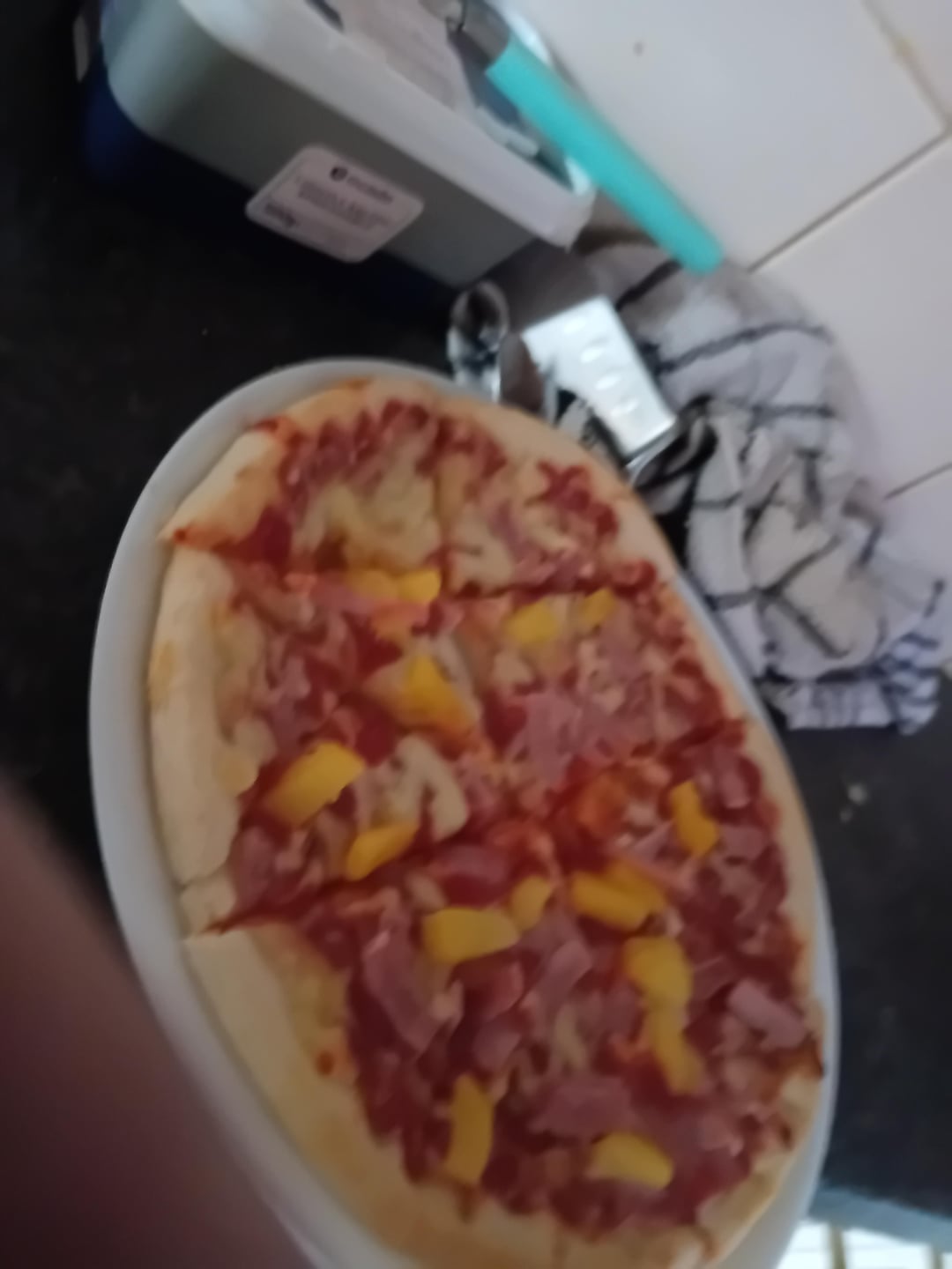 Dad strikes again with his horrendous chopping on my pineapple pizza