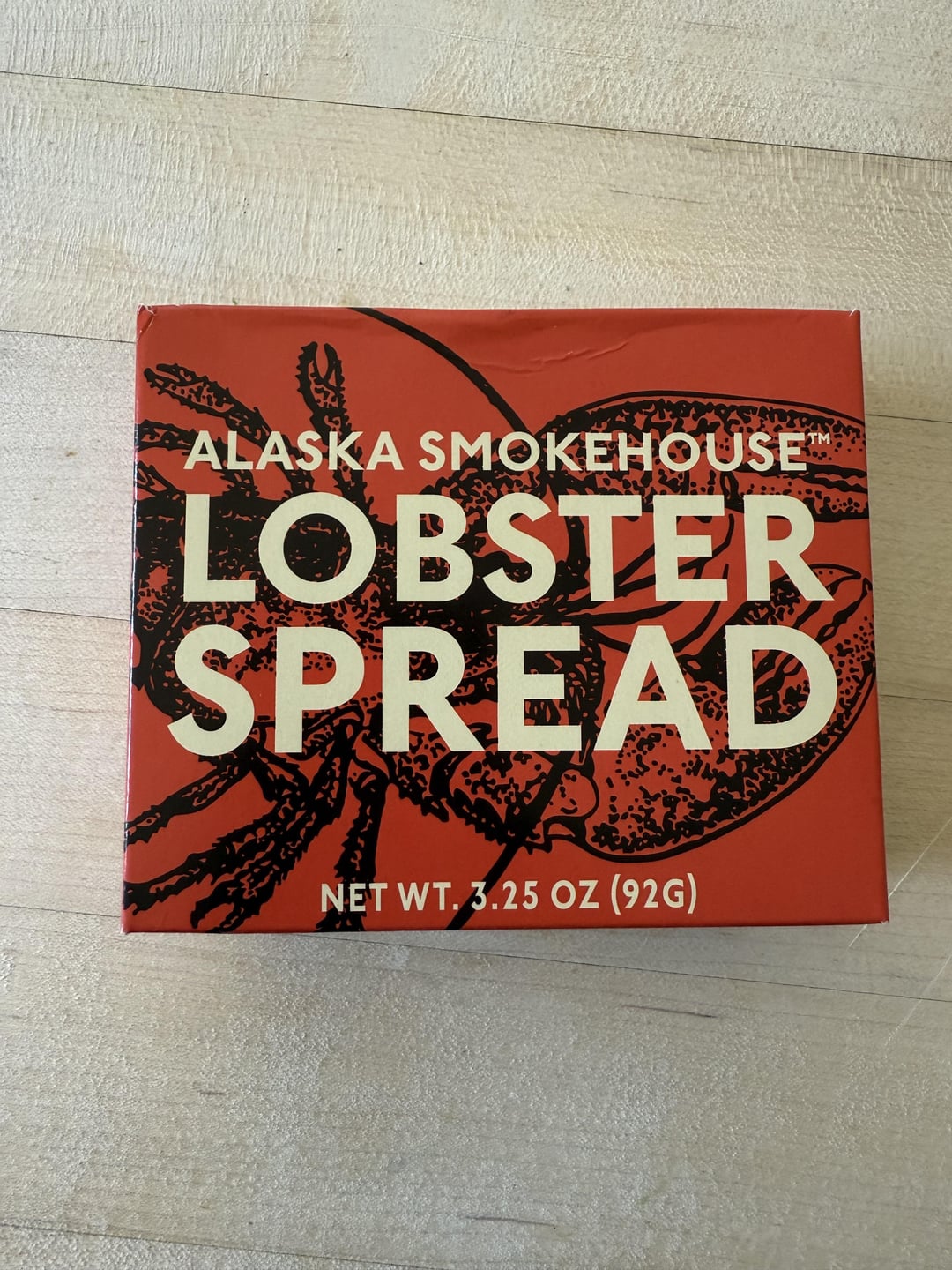 It’s a small pate tin, and I get mostly salmon flavor out of it. If there’s lobster in there it’s so overwhelmed by the salmon which is listed as the second ingredient.