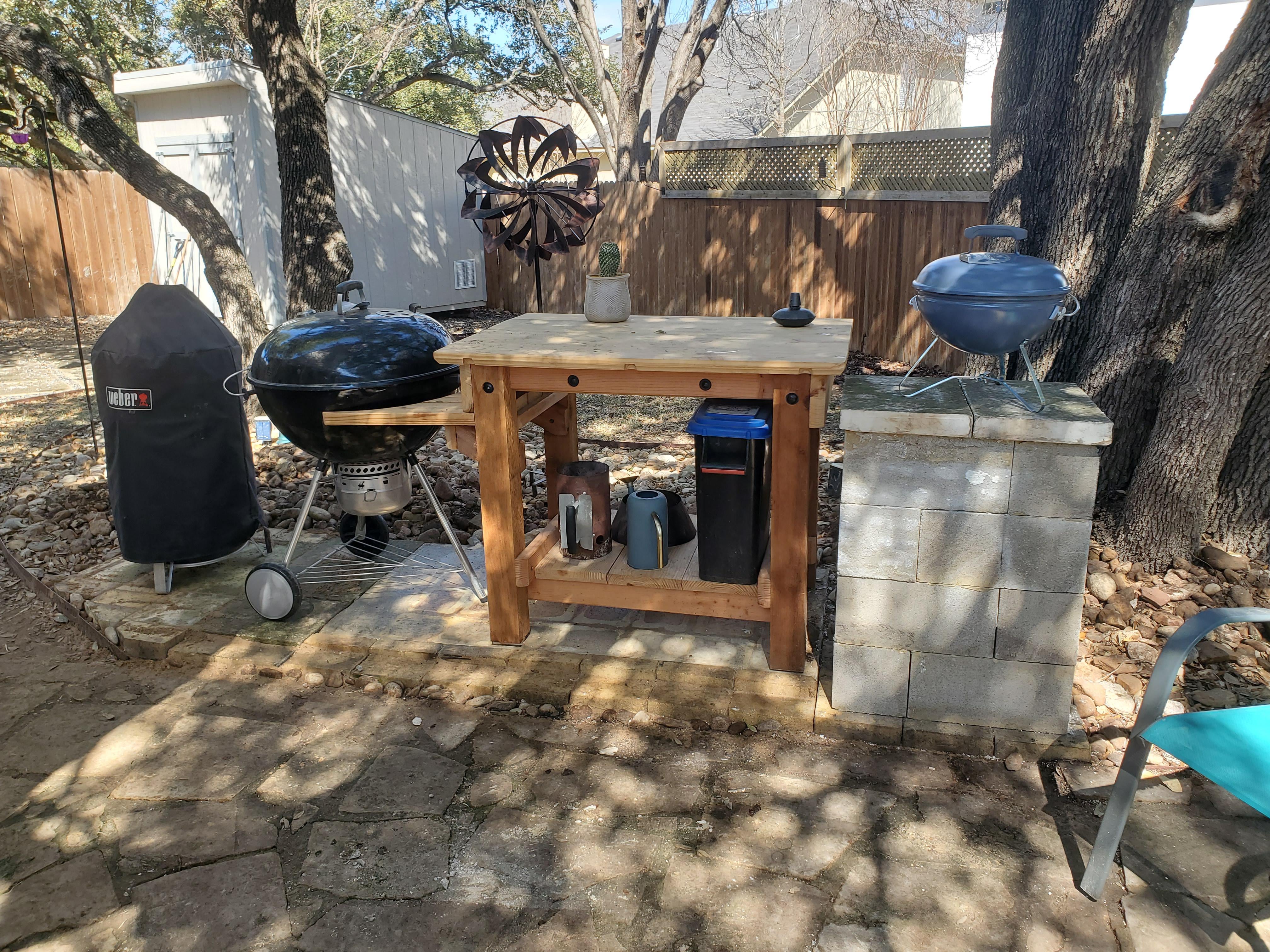 Weber set up. Broke down old fire pit. Extended the slab and re used CMU and limestone. Not perfect or done but glad I congregated the Webers.by AlarmDangerous964 2 Comments the_OMD 7 months ago 26 kettle and 18 wsm? Nice FartmanBreaux 7 months ago I love how my man had a brick pillar and said “I’m a make this a Weber pedestal and a part of my outdoor kitchen.”Nice set upWrite A CommentYou must be logged in to post a comment.