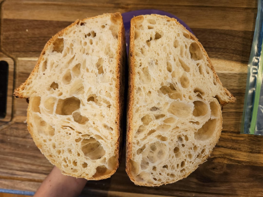 Made my 2nd loaf yesterday and cut into it today! I think it's slightly underproofed as it's slightly gummy, but it's very tasty, slightly chewy, and I finally got a good ear!!