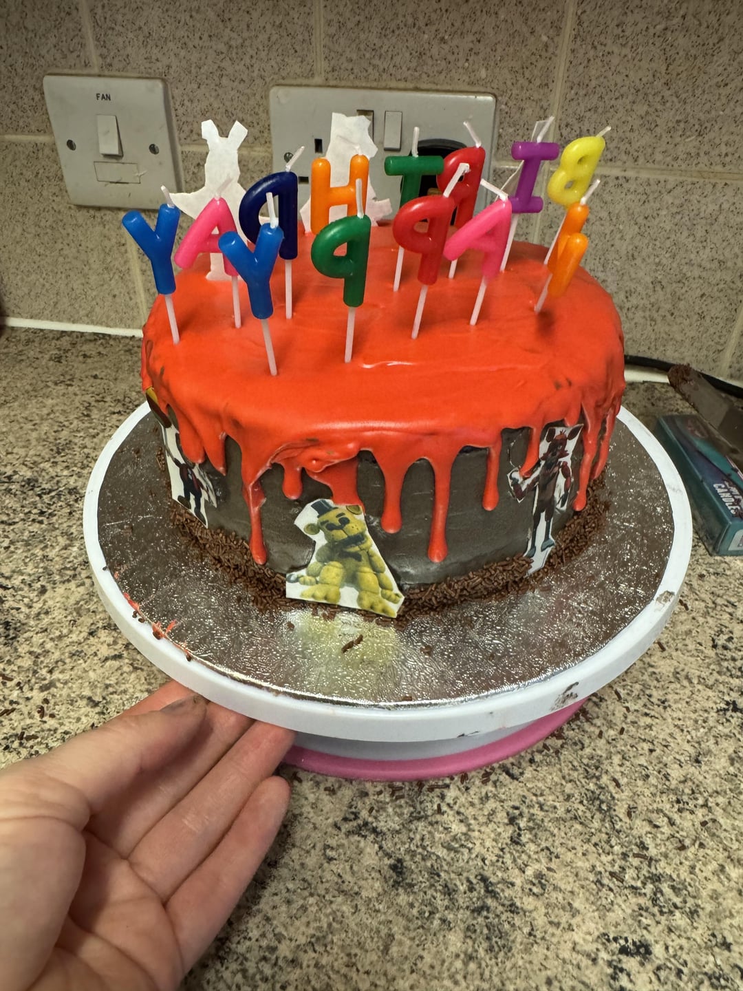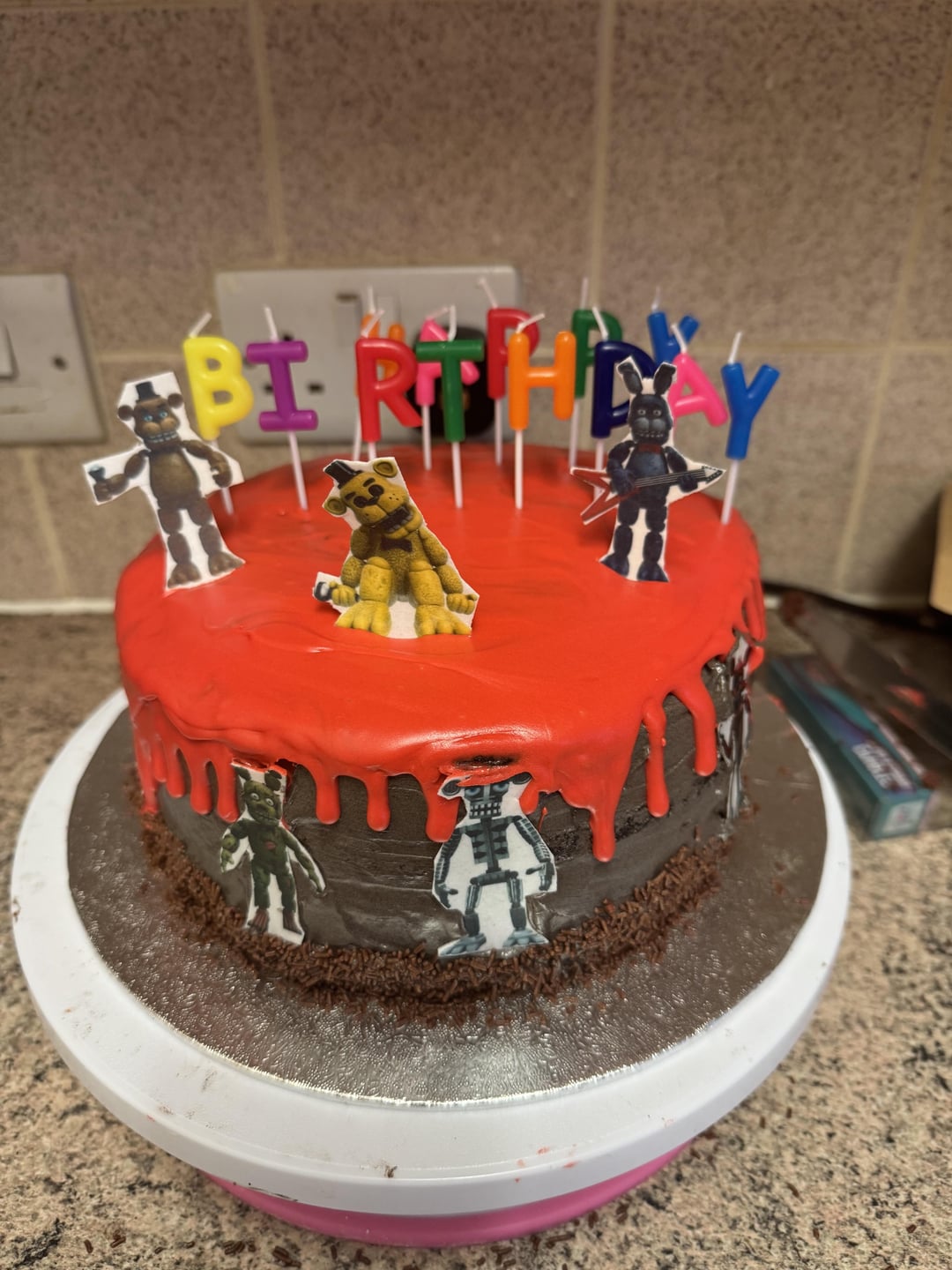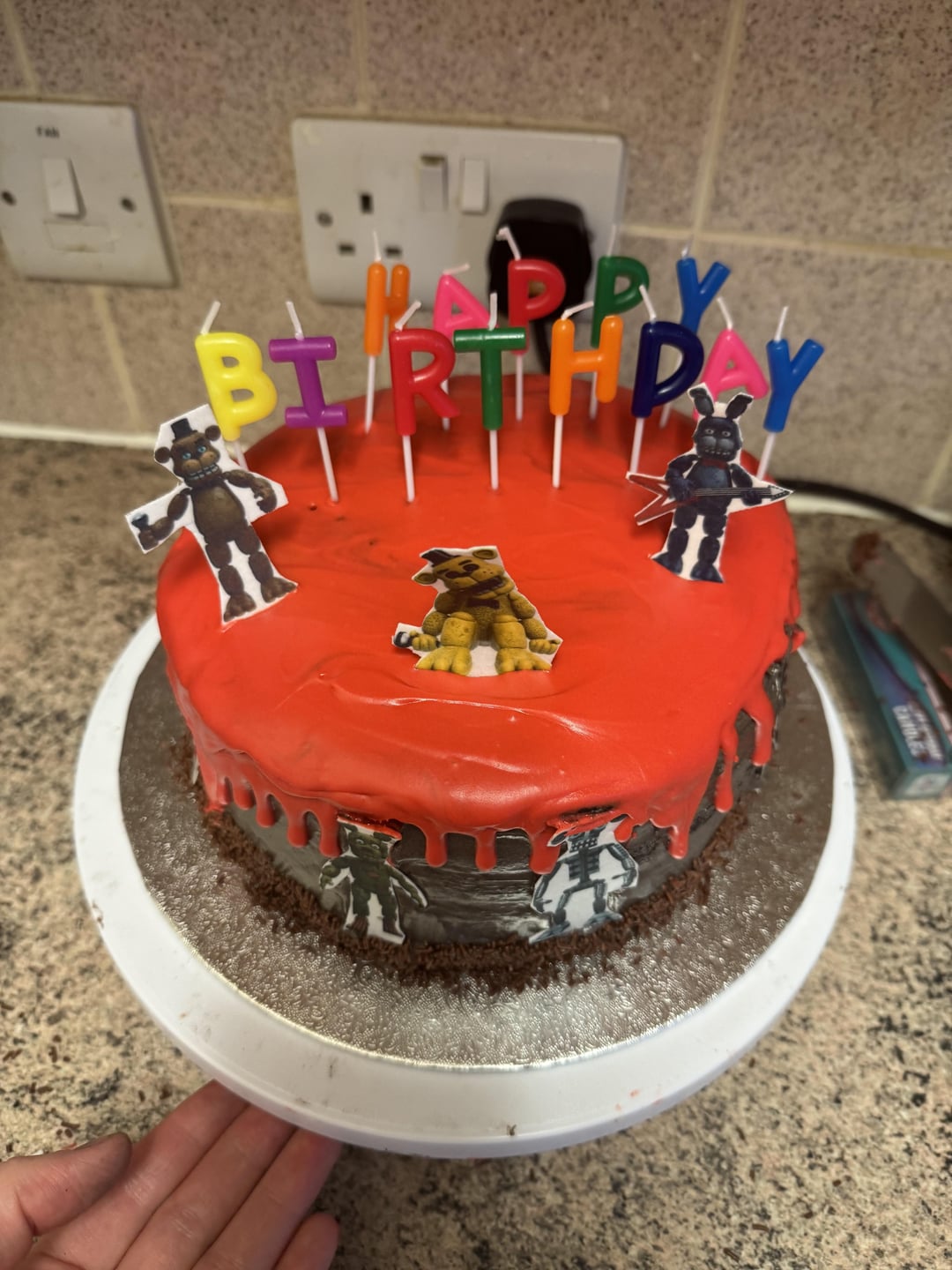 The Mrs made a five nights at Freddy’s birthday cake ( first attempt)chocolate and caramel 🤤 🍫 🎂by ma2sk 5 Comments NewbieMaleStr8isBack 1 year ago Nice notakuriboh 1 year ago The cutouts could’ve been neater… maybe trace around it with a scalpel Globewanderer1001 1 year ago Is that edible rice paper or similar? You typically don’t want to put inedible items all over your frosting.I’ll use edible paper, flowers, gum paste, etc… Curious-Tart6854 1 year ago Good job for first attempt!! It looks delicious!! 👏👏 KitKatTheBratQueen 1 year ago Use a toothpick on the back of the cutouts to hold them up better!! the cake looks delicious and my preggo self wants it bad 😭Write A CommentYou must be logged in to post a comment.